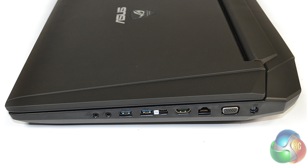 Asus' striking logo and the attractive ROG badge take centre stage on the G750JZ's rear panel. A white light is situated inside the ROG logo and lights up when the system is powered.