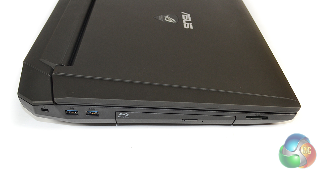 Moving to the left, we are met by a further two USB 3.0 ports, a multi card reader, and the Blu-ray reader (and DVD rewriter). There is also a Kensington lock point.