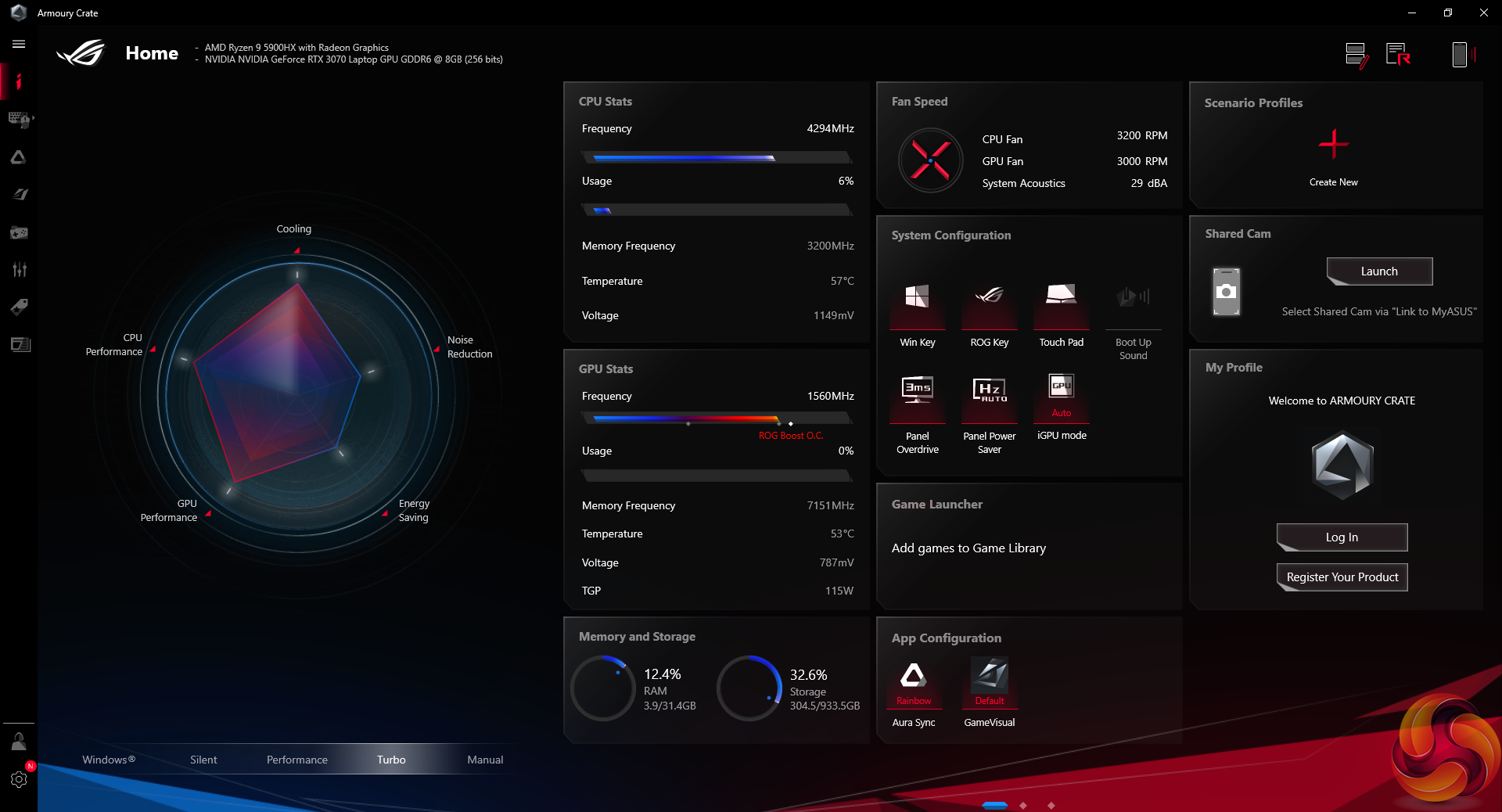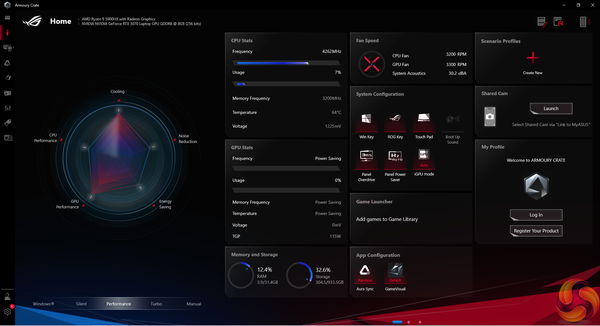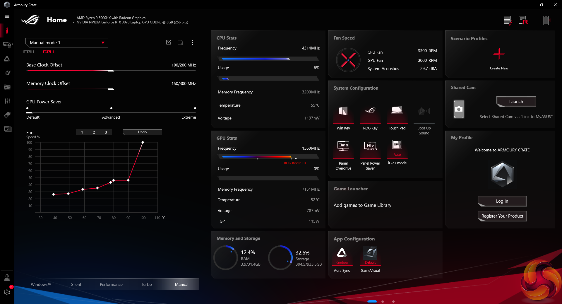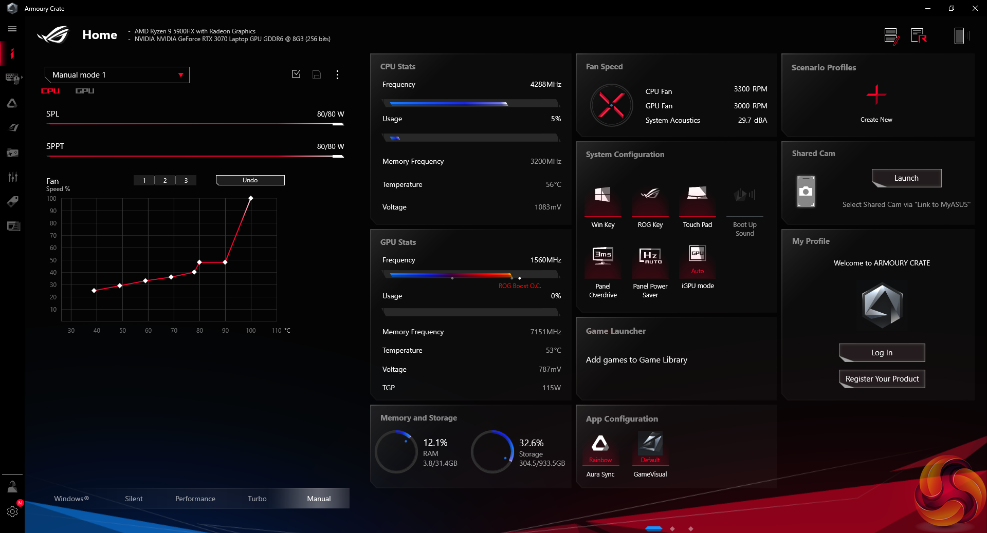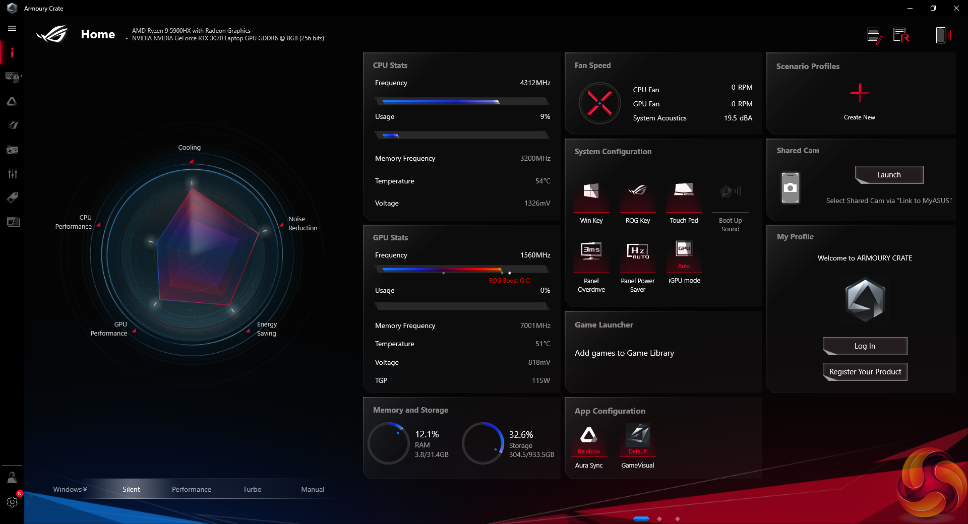 Armoury Crate is the primary port of call for handling system operations, and here ASUS does well at including a sensible set of pre-defined operating modes with clear guidance as to their functions.