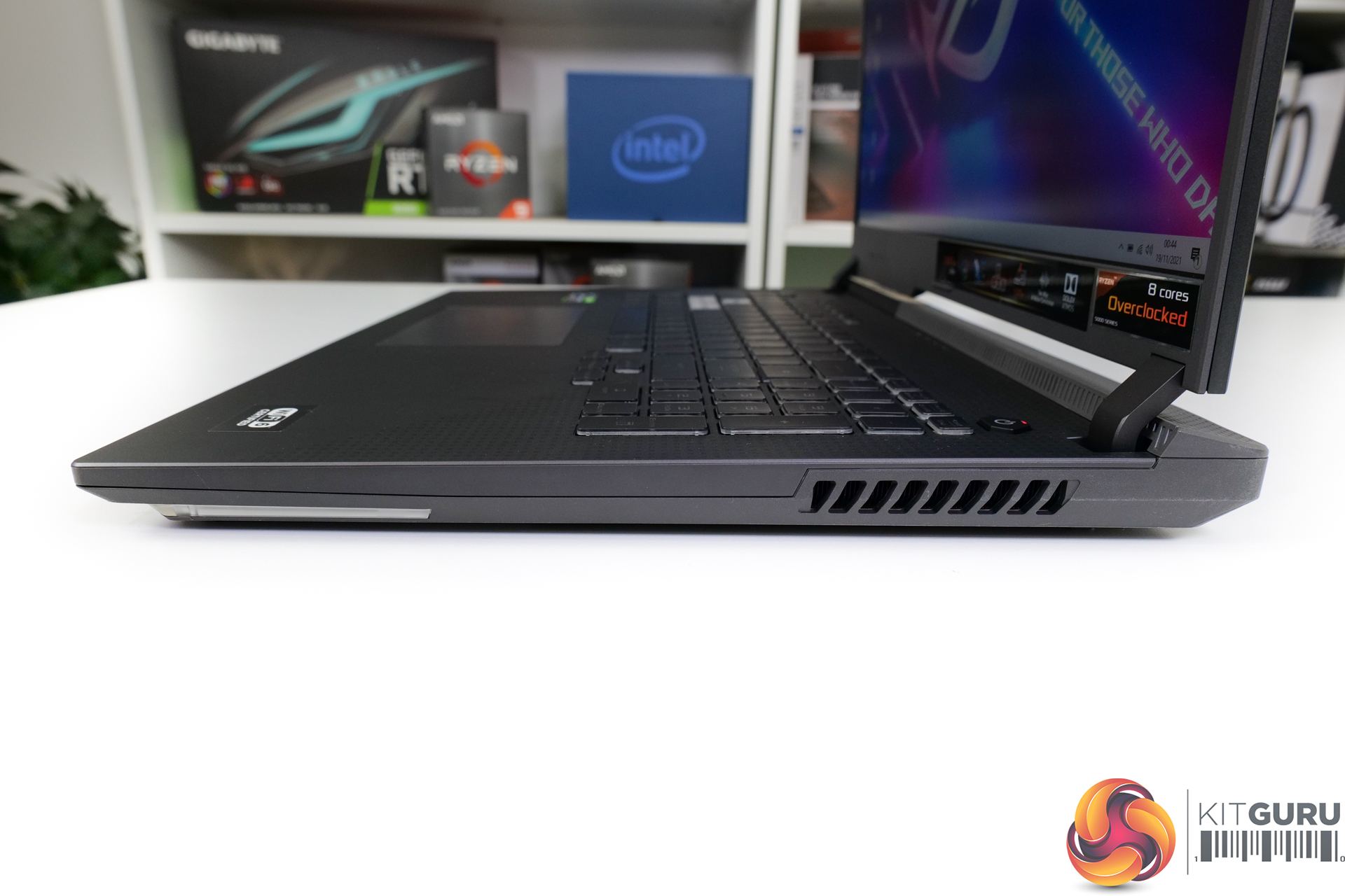 Starting with the design of the ASUS ROG STRIX G17 G713QR-HG026T, the 17.3” class unit is evidently sizable. This is not a laptop that you will want to regularly lug around with 2.7kg weight (excluding the 240W barrel connection charger). With that said, sub-3kg is actually very impressive for a 17” class laptop, and the thin bezels on the sizable screen make the unit a little sleeker than some of its competitors.