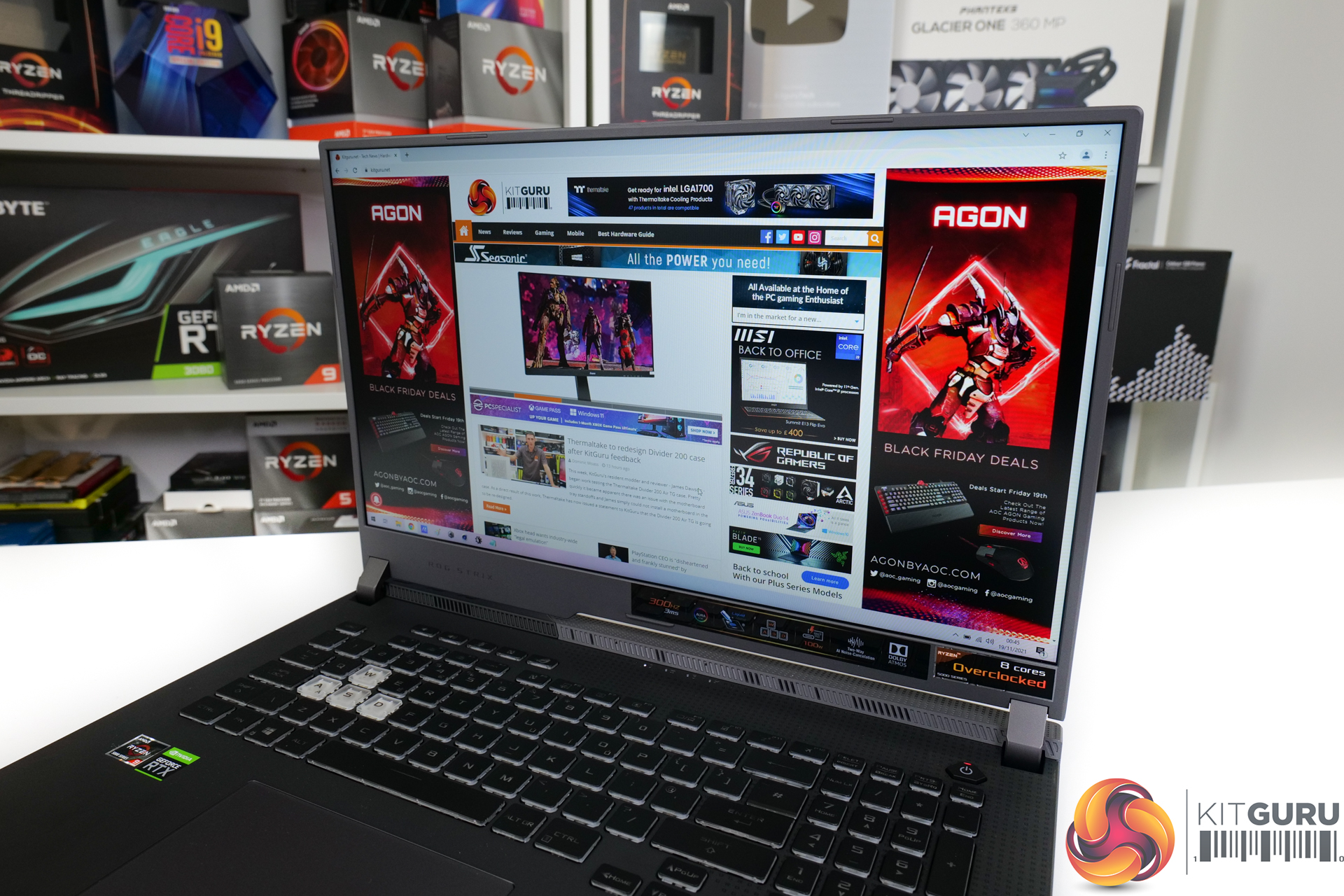 Focussing on the screen, ASUS deploys a 17.3” 1920×1080 FHD screen with a 300Hz refresh rate and 3ms response time. This ‘IPS-level’ panel is clearly targeting enthusiast gamers who want to push their titles at uber high FPS numbers. And that’s fine for the audience, given that a Full-HD panel with 75% Adobe colour coverage is unlikely to impress too many content creators. The visual quality itself is actually good in my opinion, and the peak brightness was fine for my own testing usage (that doesn’t include outdoors in the UK autumn/winter).