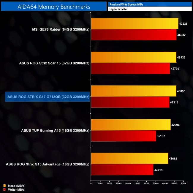 Memory performance is right where we would expect it to be for 2x16GB of 3200MHz DDR4 at CL22.
