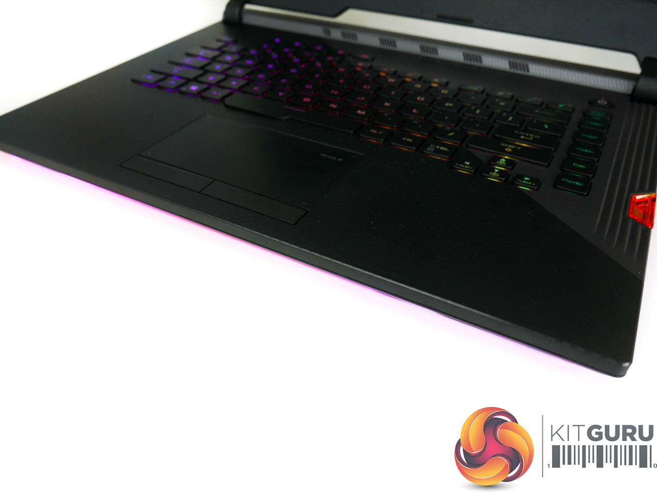 The light-up ROG logo is a nice touch which adds to the premium feel. There is a decent amount of venting on the underside plastic shroud, though most of the air intake and exhaust is handled by back and side vents.