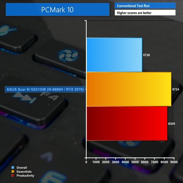 PCMark 10 performance highlights the Scar III's ability to complete light general-usage tasks with proficiency.