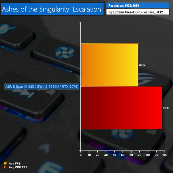 Ashes of the Singularity: Escalation is a Sci-Fi real-time strategy game built for the PC platform. The game includes a built-in benchmark tool and was one of the first available DirectX 12 benchmarks. We run the GPU-focused benchmark using DirectX 12, a 1080p resolution and the Extreme quality preset.