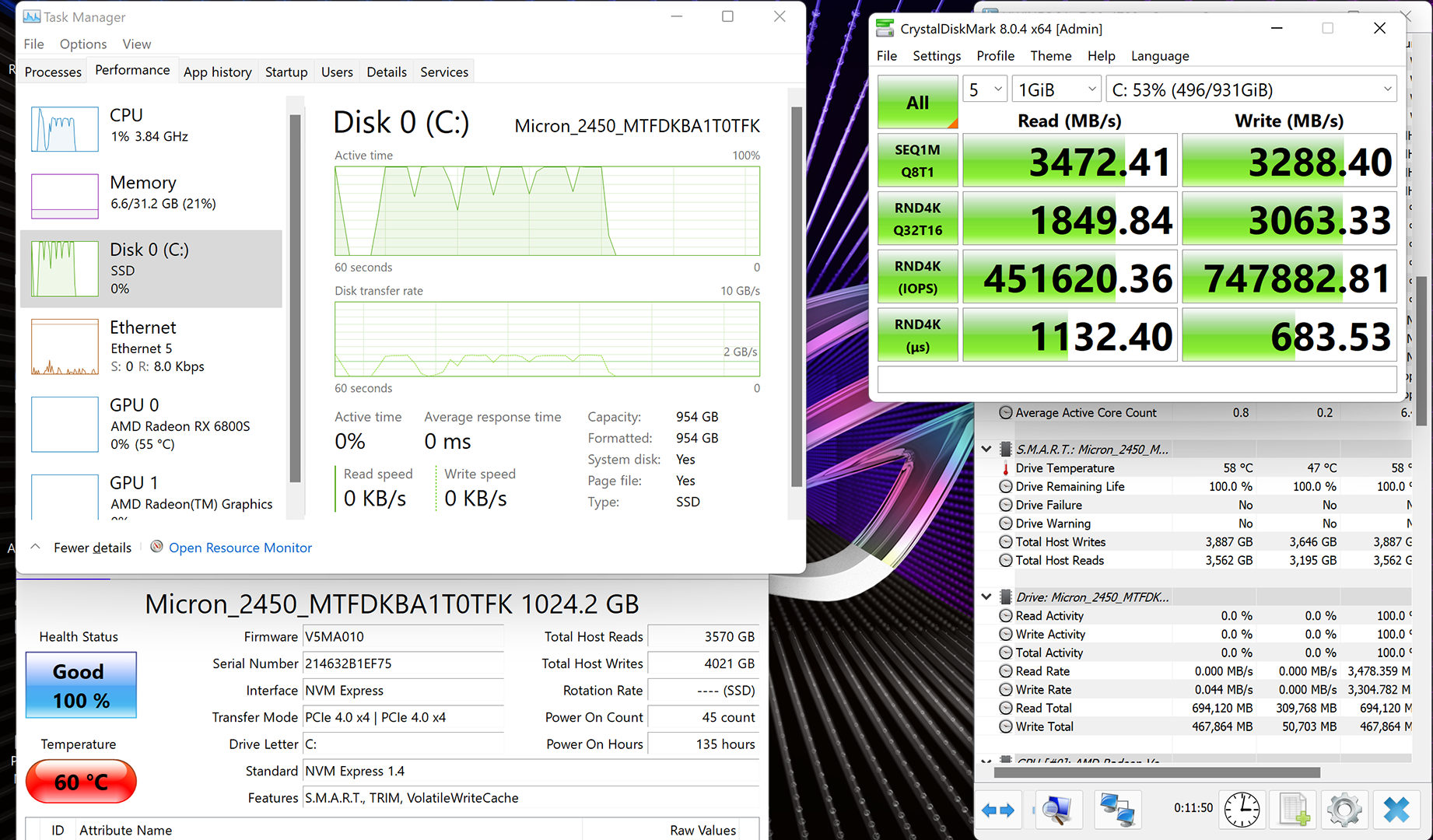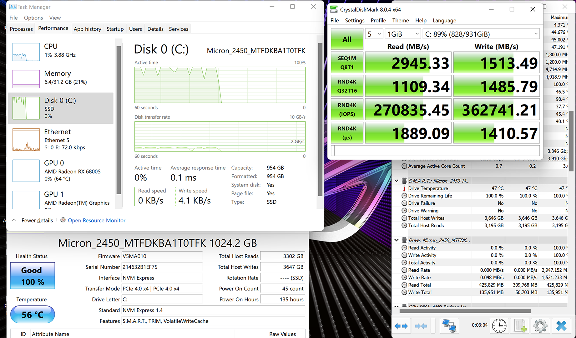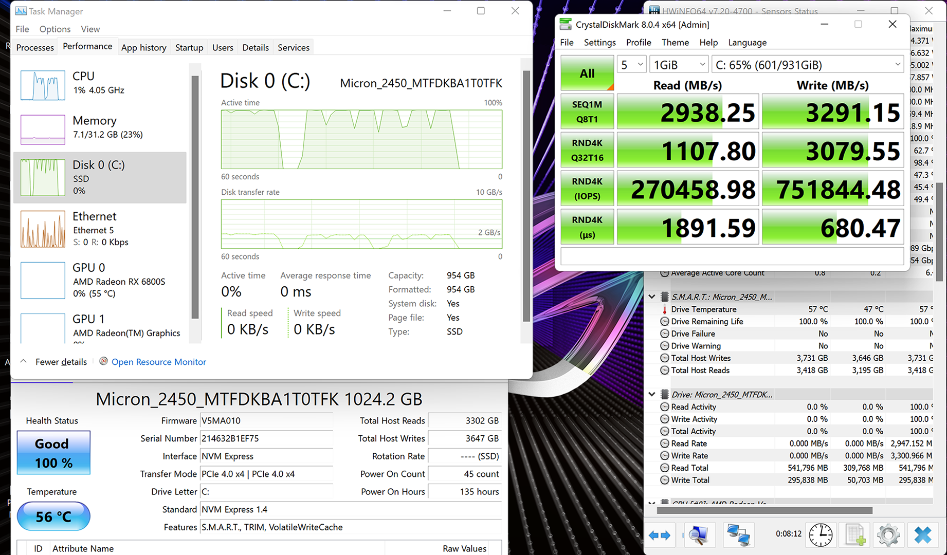 There’s little to indicate that this Micron 2450 SSD actually benefits from its PCIe Gen 4×4 connection in terms of speed. And when additional games are loaded onto the drive, we noticed a significant drop in the write speeds as the buffer capacity is eaten into.