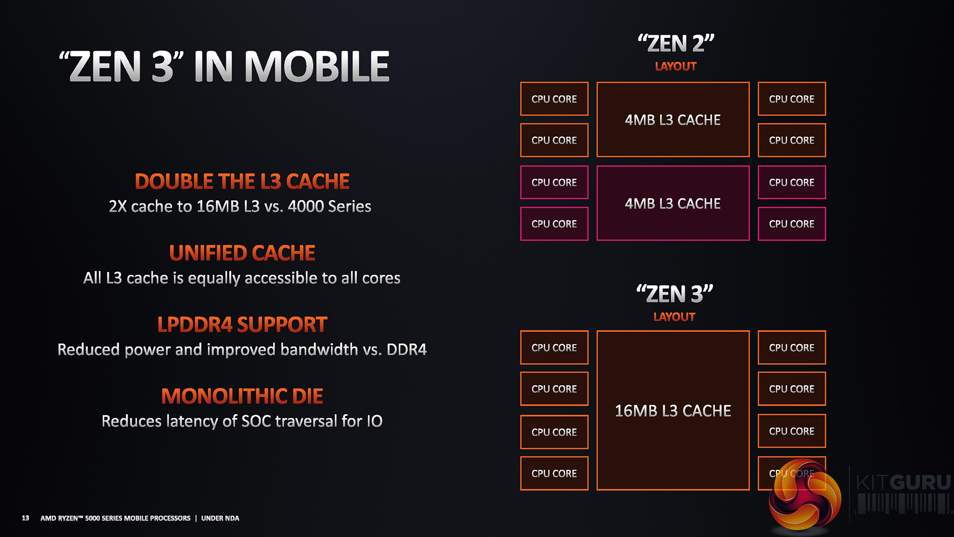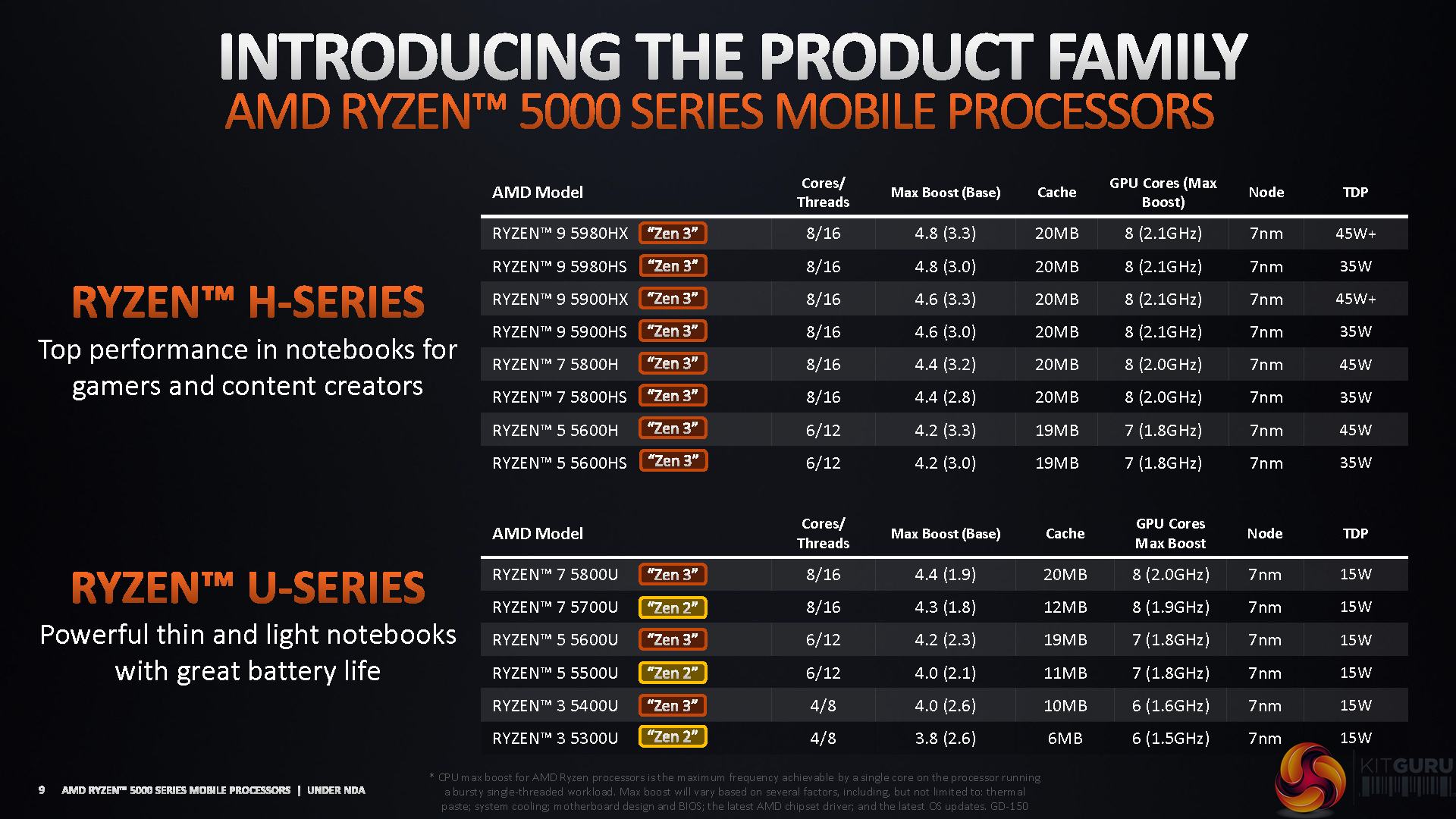 For more details on the Ryzen 5000 Mobile APU architecture, see our review of the Ryzen 5000 launch sample ASUS ROG Flow X13 laptop. The information there is relevant as the 7nm, 180mm2, 10.7 Billion FET Ryzen 5000 Mobile SOCs are primarily differentiated by their TDP-determined clock speeds on a core-for-core basis.