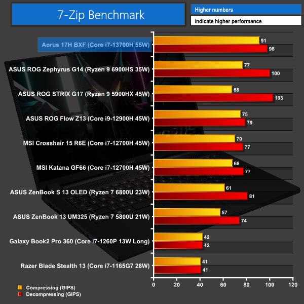 7-Zip performance is very strong on the 13700H.