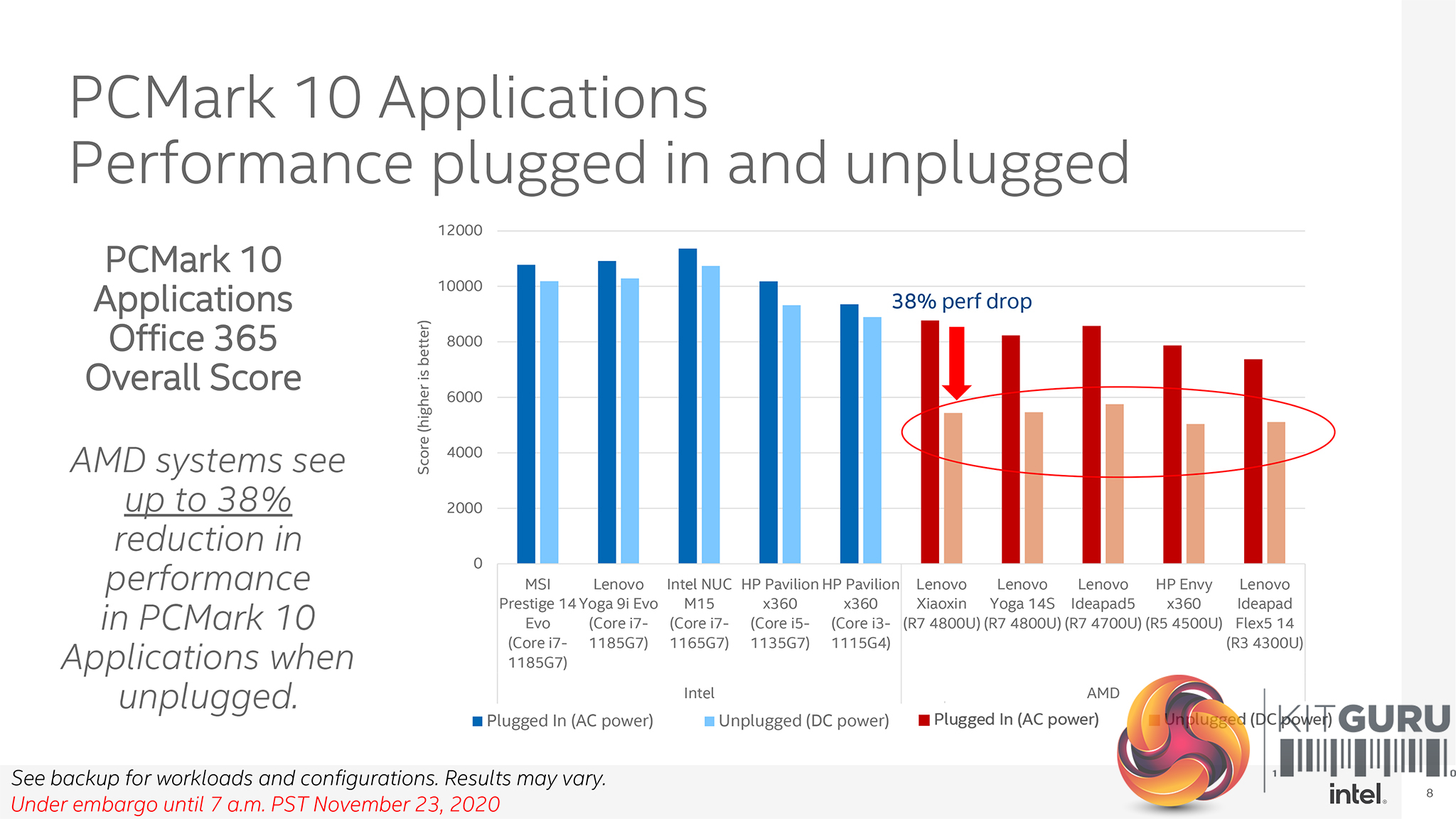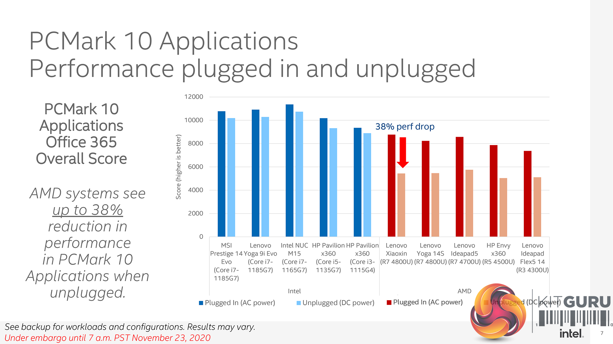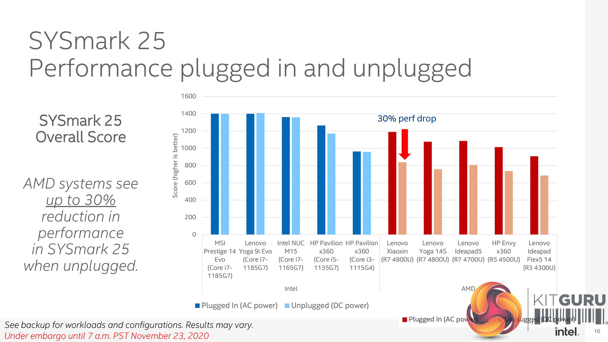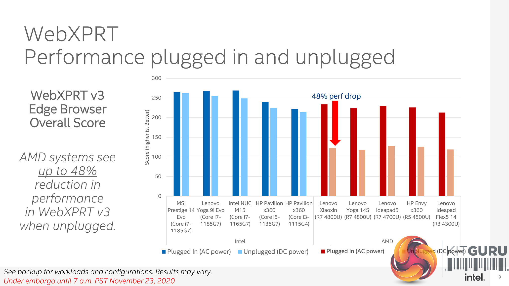 - Intel argues that AMD laptops lose a high percentage of performance when run on battery