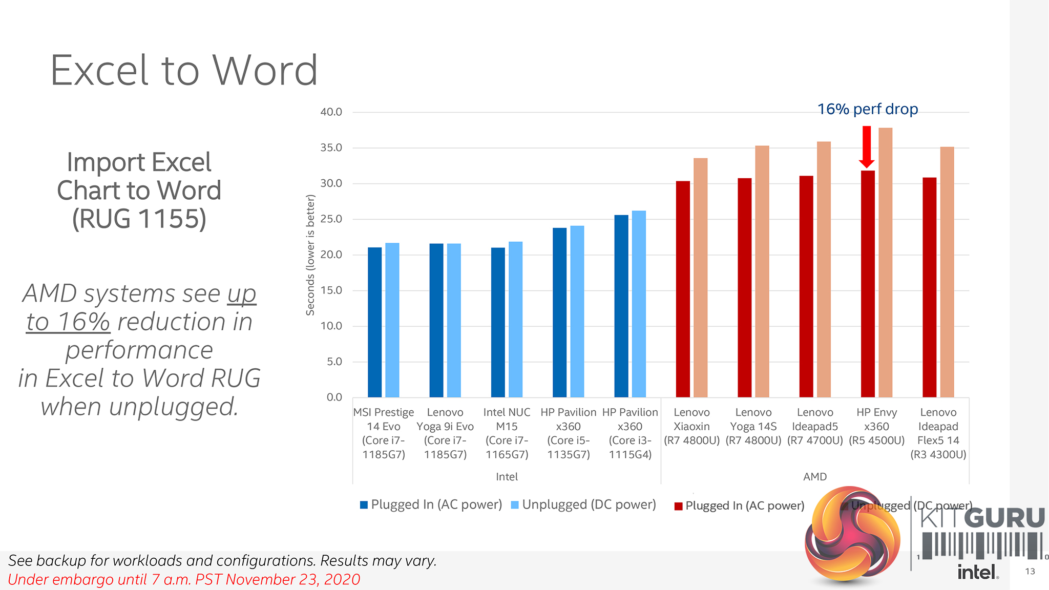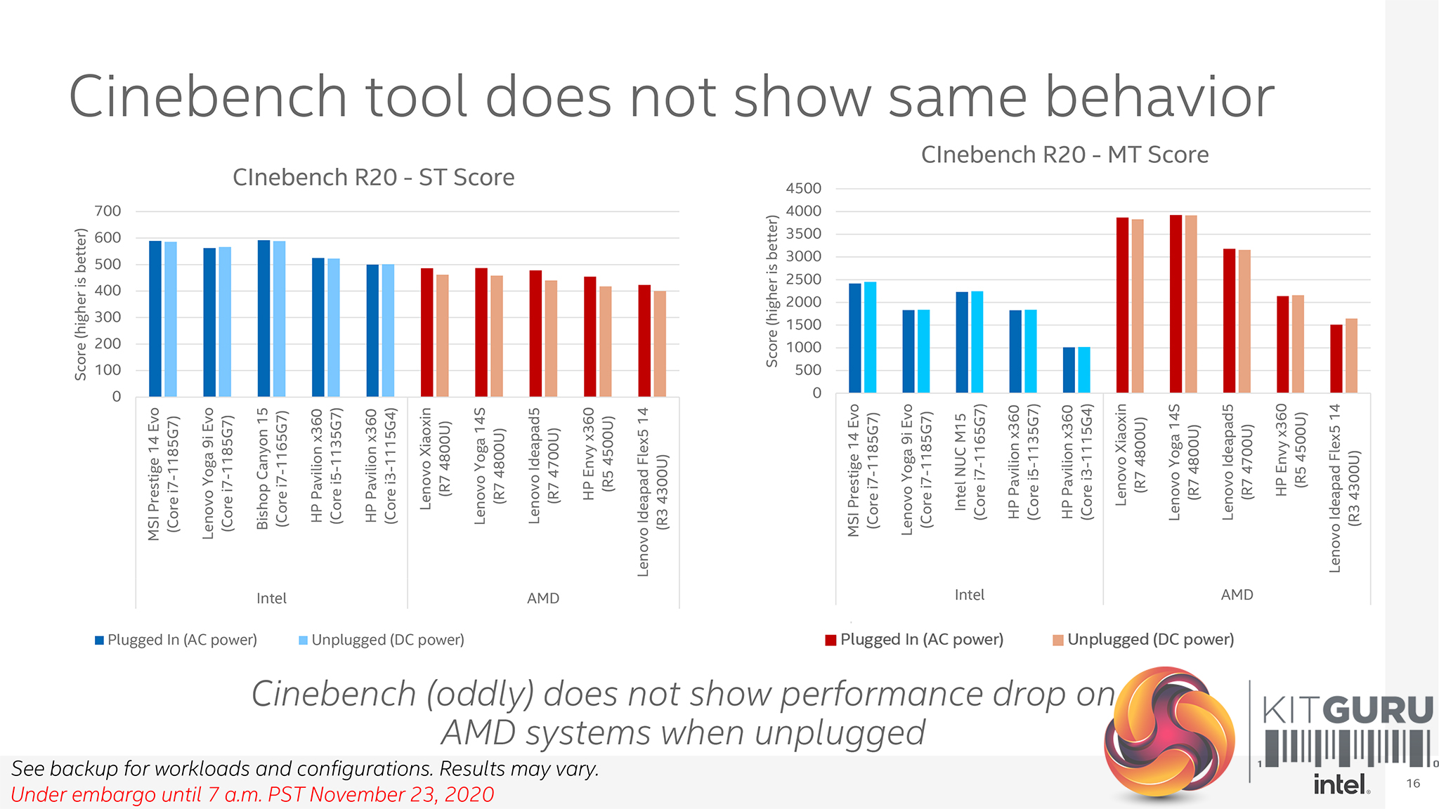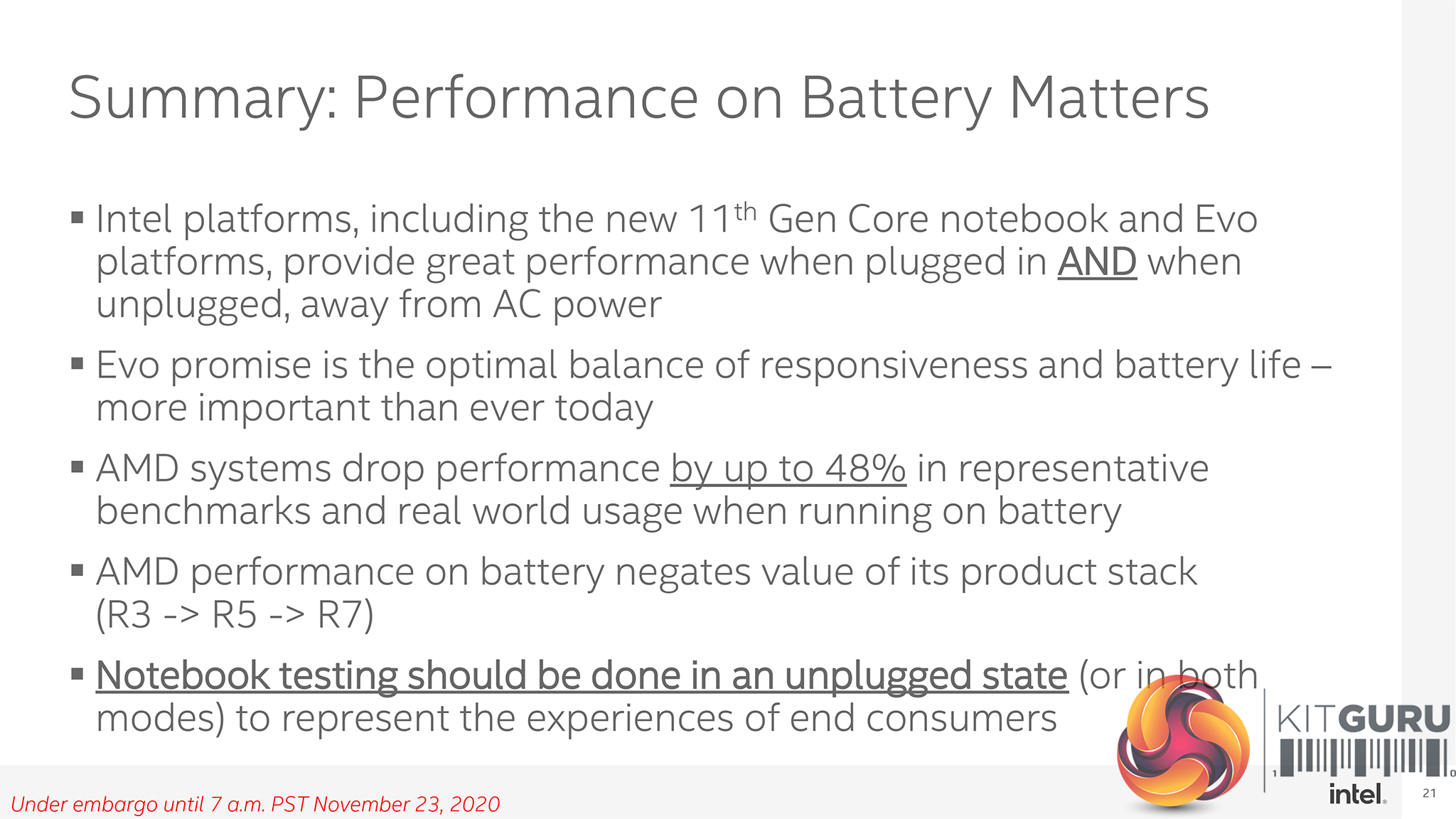 - Intel argues that AMD laptops lose a high percentage of performance when run on battery