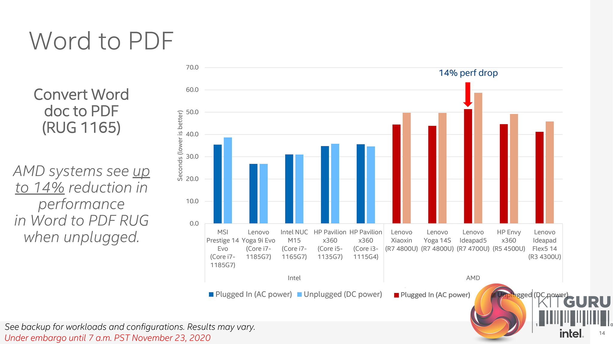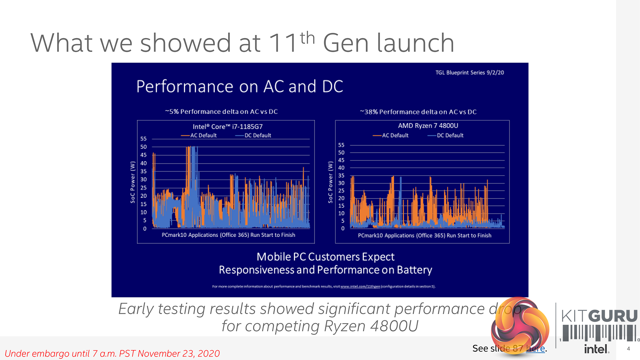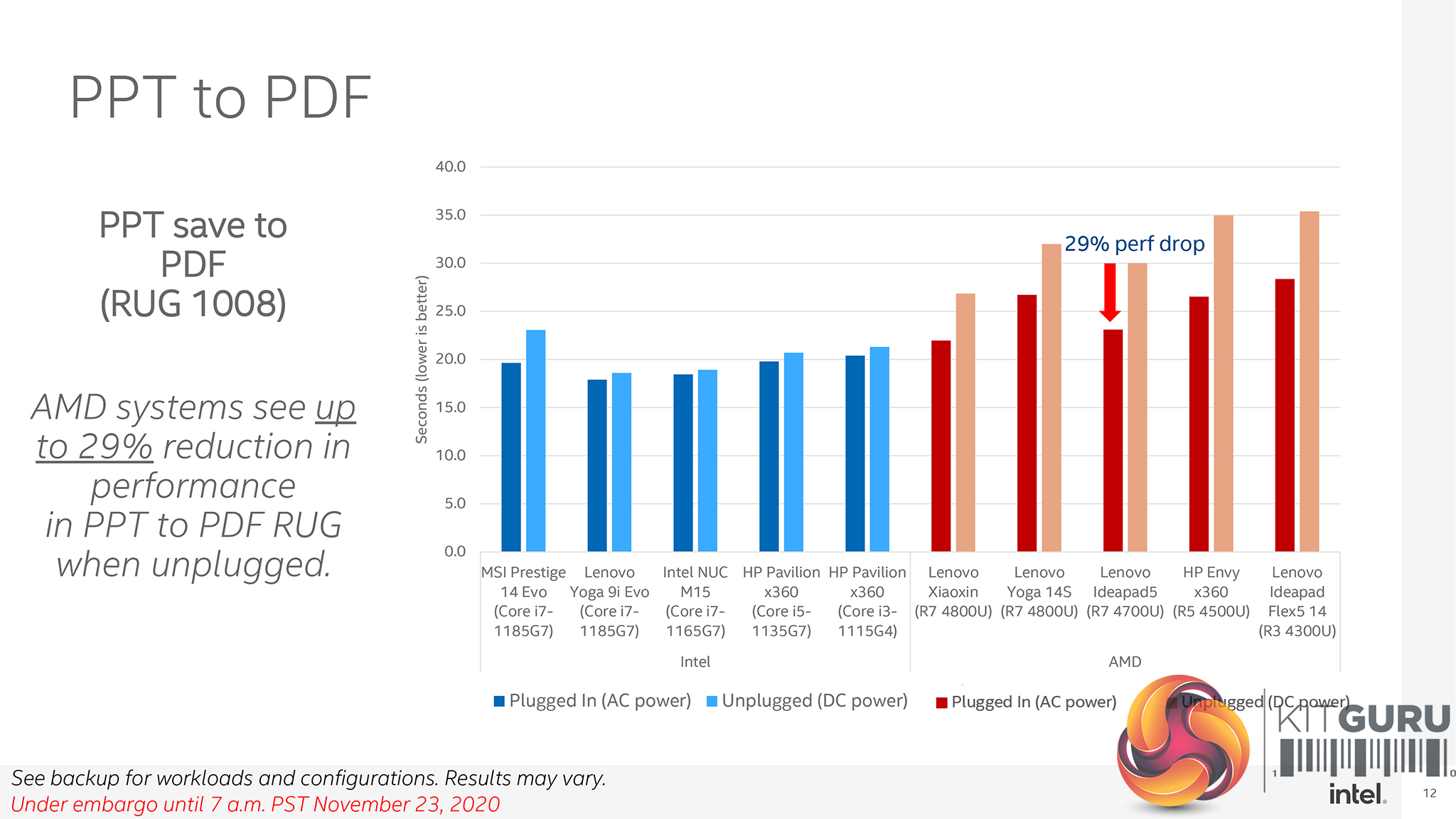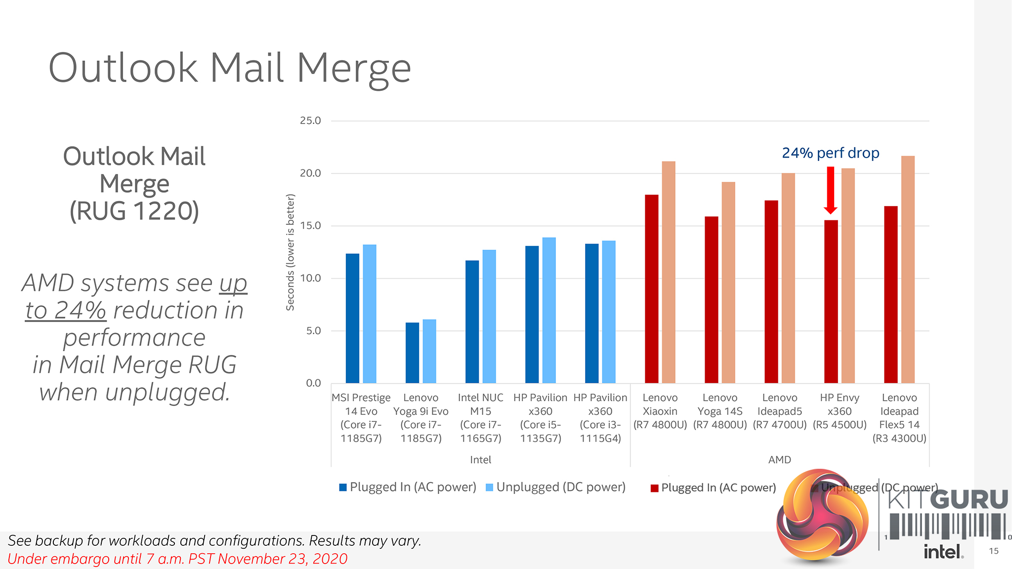- Intel argues that AMD laptops lose a high percentage of performance when run on battery