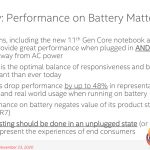 Leo recently sat through an Intel briefing relating to benchmarking laptops and focusing on performance both with and without the power adapter connected. Throughout, Intel was keen to highlight the AMD drops performance by a higher percentage in their own testing.