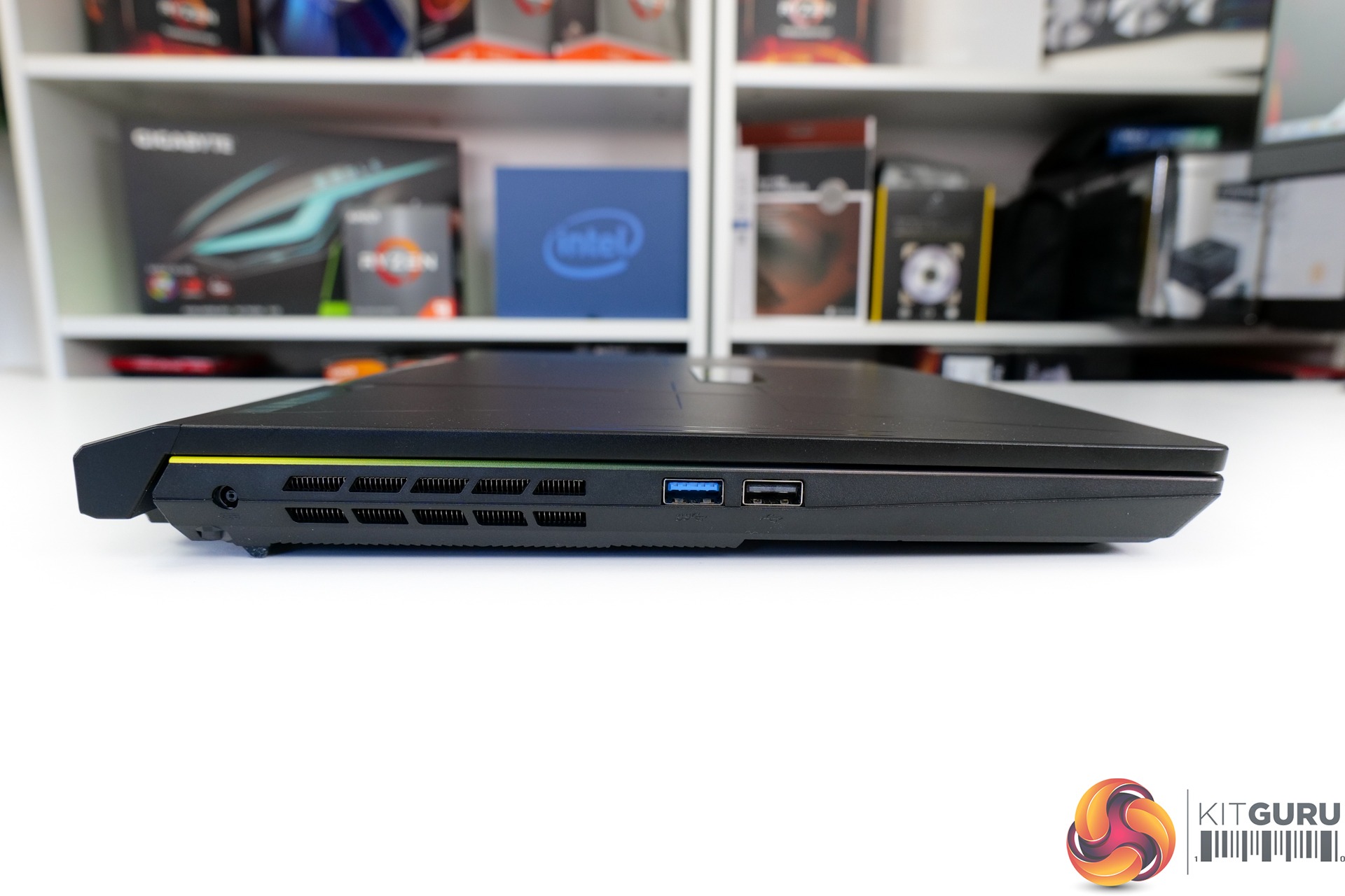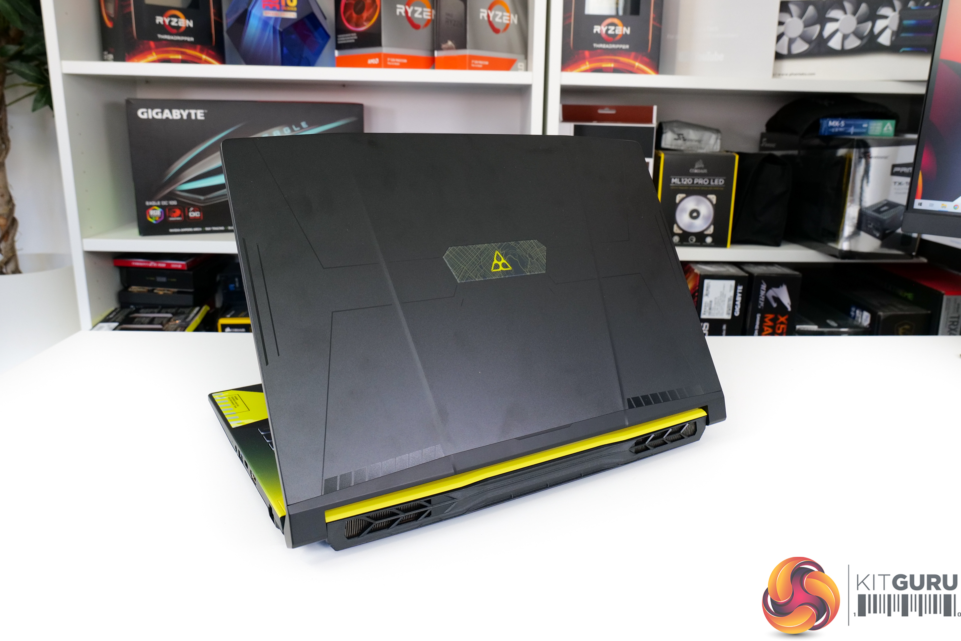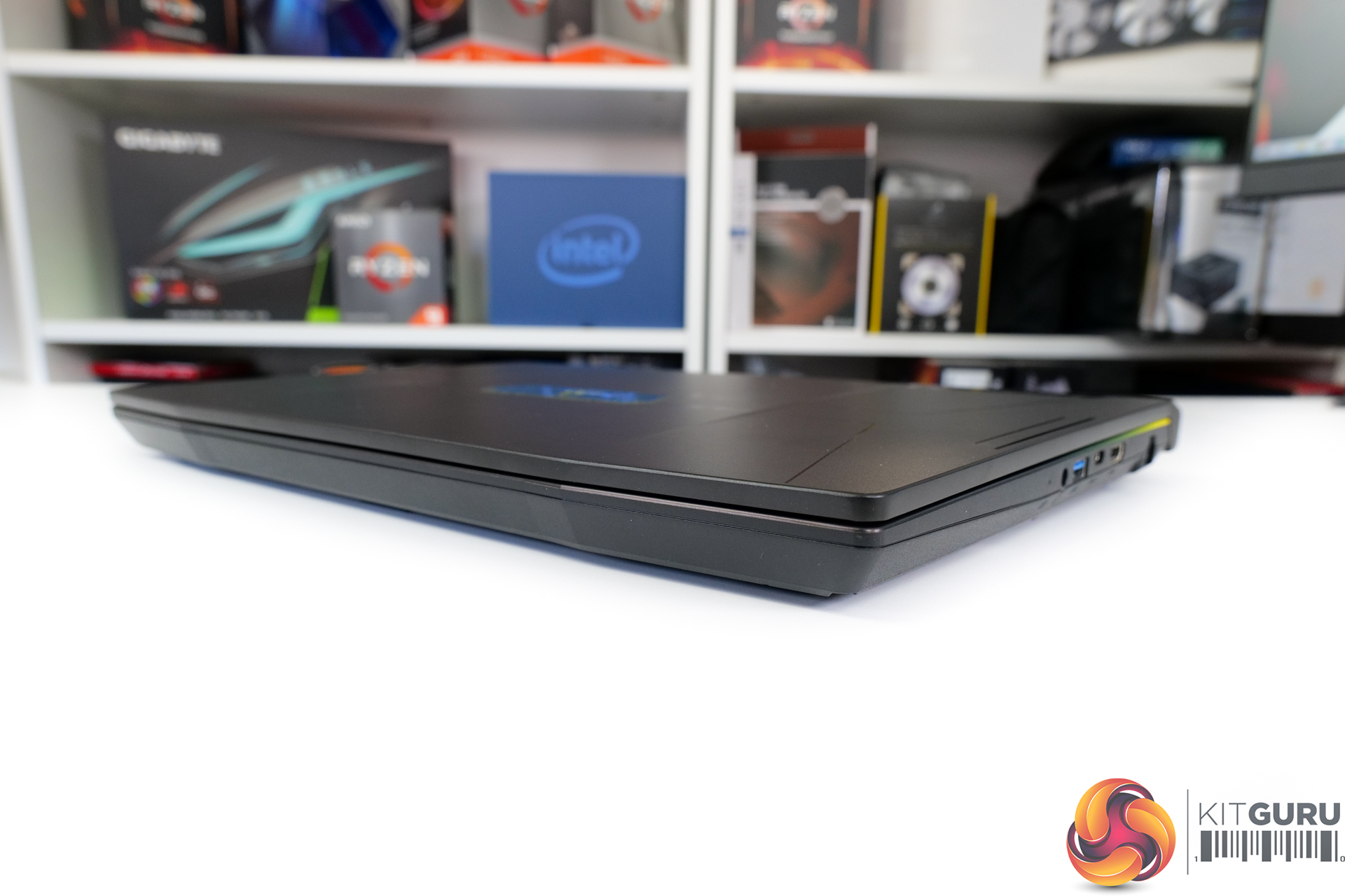 This is pretty much a generic 15.6” chassis and it certainly is not designed to be sleek and portable. At well over 30mm-thick in some areas with the lid closed, and still 26.9mm even with the lid open, this is very much a park-it-on-the-table gaming laptop. The 2.47kg weight and chunky 240W power brick backup that point.