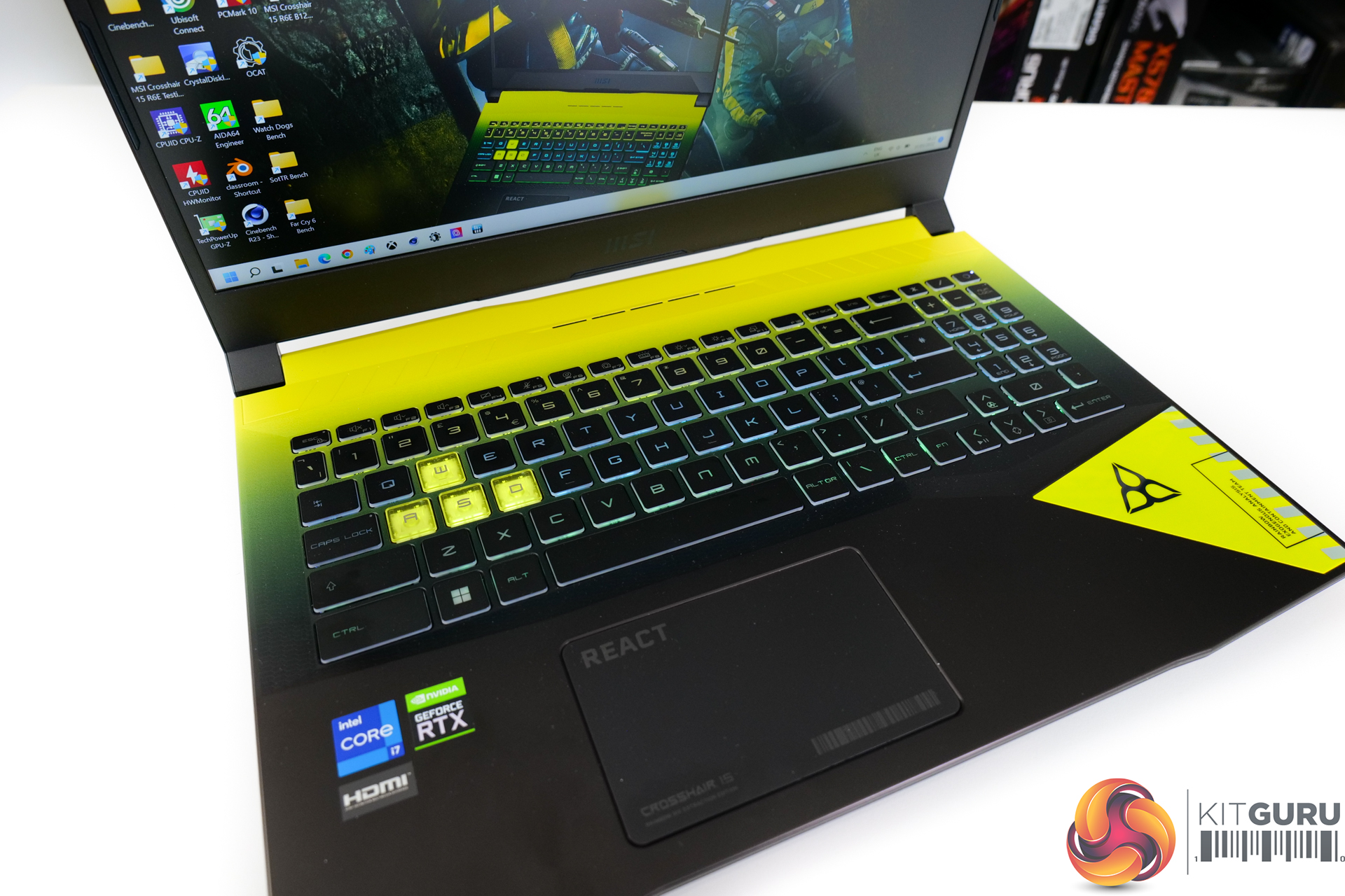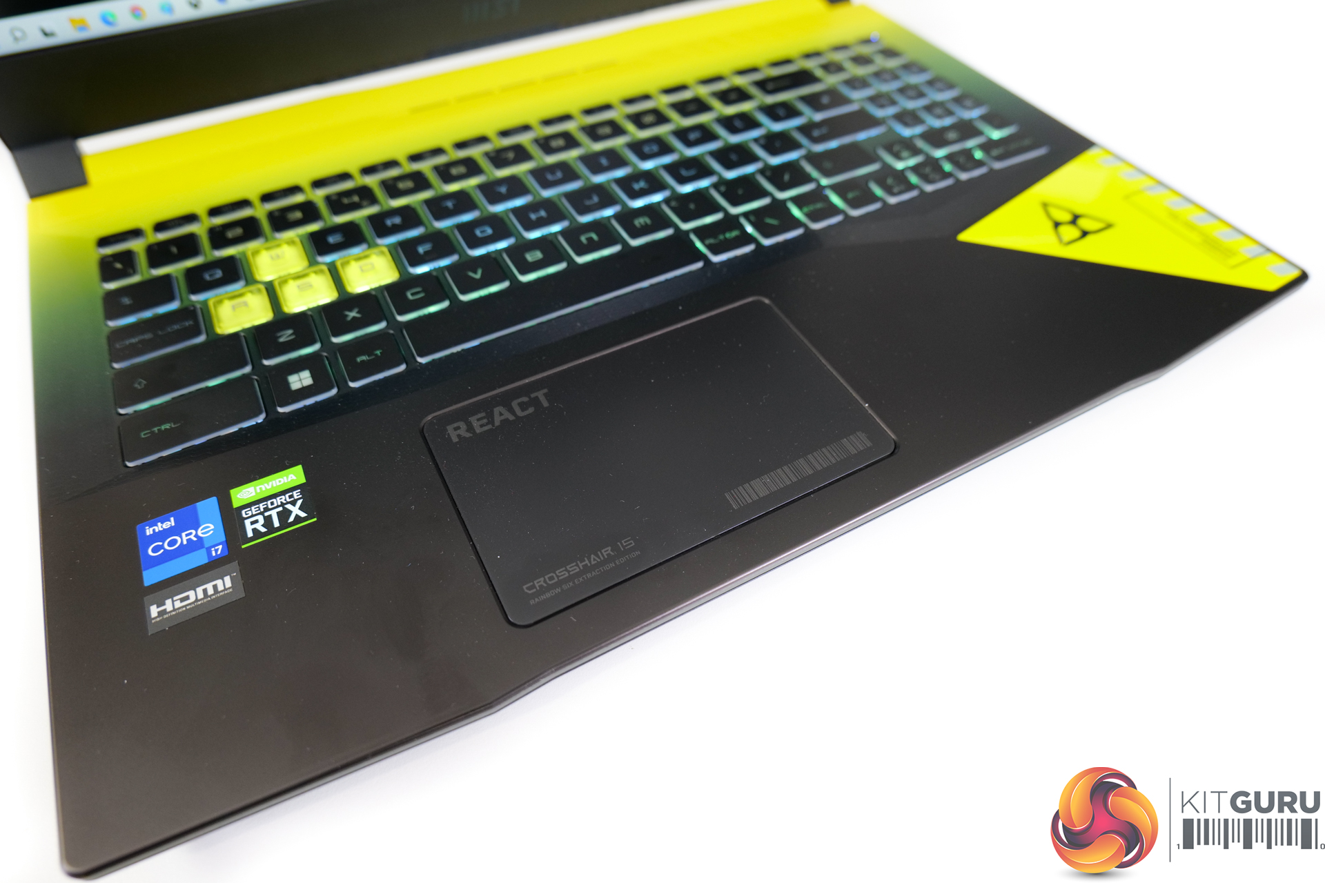 In terms of design, the Crosshair 15 R6E is very similar to the Katana GF66 that we reviewed recently – aside from the Rainbow Six Extraction-inspired black and yellow colour scheme, of course. I’m not going to pass comment on my preference (or lack thereof) for the colour scheme as this is an undeniably personal choice.