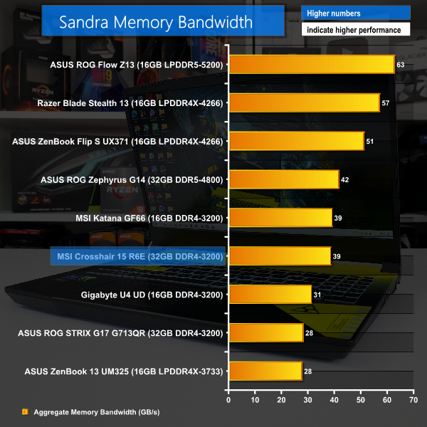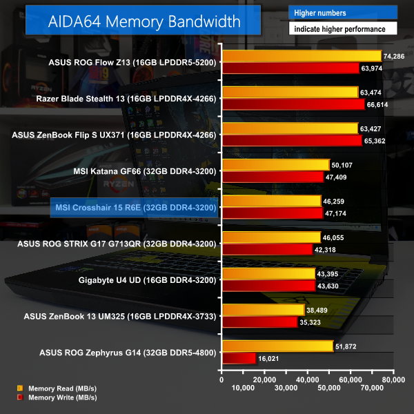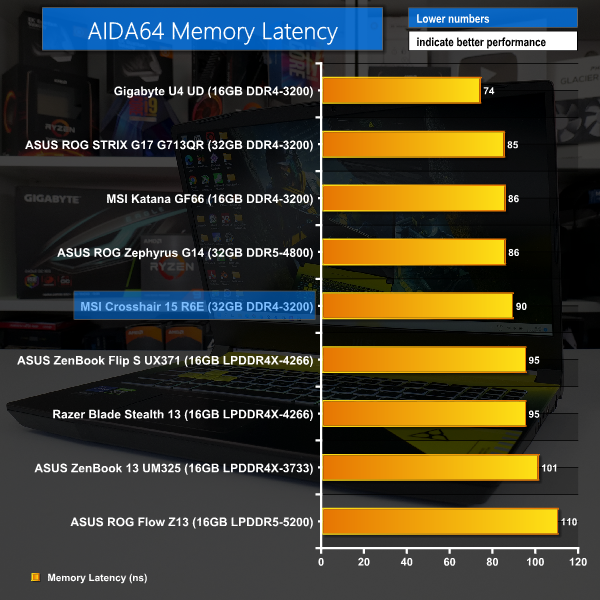 Memory bandwidth for the 32GB DDR4 3200MHz set of memory is fine and is only handsomely beaten by LPDDR4 or LPDDR5. Latency of the set is good, too, and I have no problems with DDR4 being used in a laptop of this calibre, as opposed to newer – more expensive – DDR5.