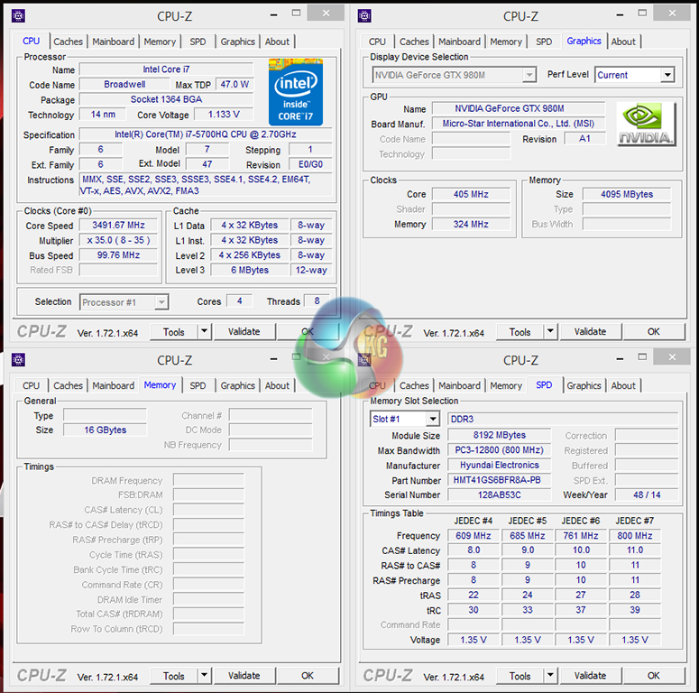 Despite being rated at 2.7GHz, the 47W Broadwell-H CPU spends most of its time at the maximum turbo level of 3.5GHz when AC power is used and Windows power option is set to High Performance.