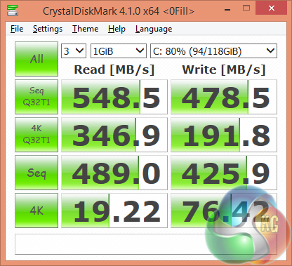 We tested USB 3.0 performance using the Kingston HyperX 3K SSD connected to a SATA 6Gb/s to USB 3.0 adapter powered by an ASMedia ASM1053 controller.