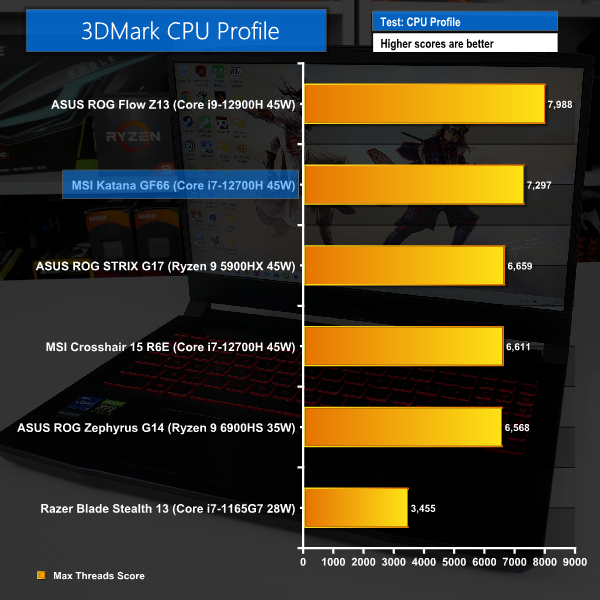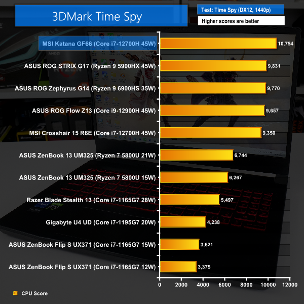 3DMark Time Spy took a very strong liking to our MSI Katana GF66 test sample, likely due to preferential power allocations during the test.