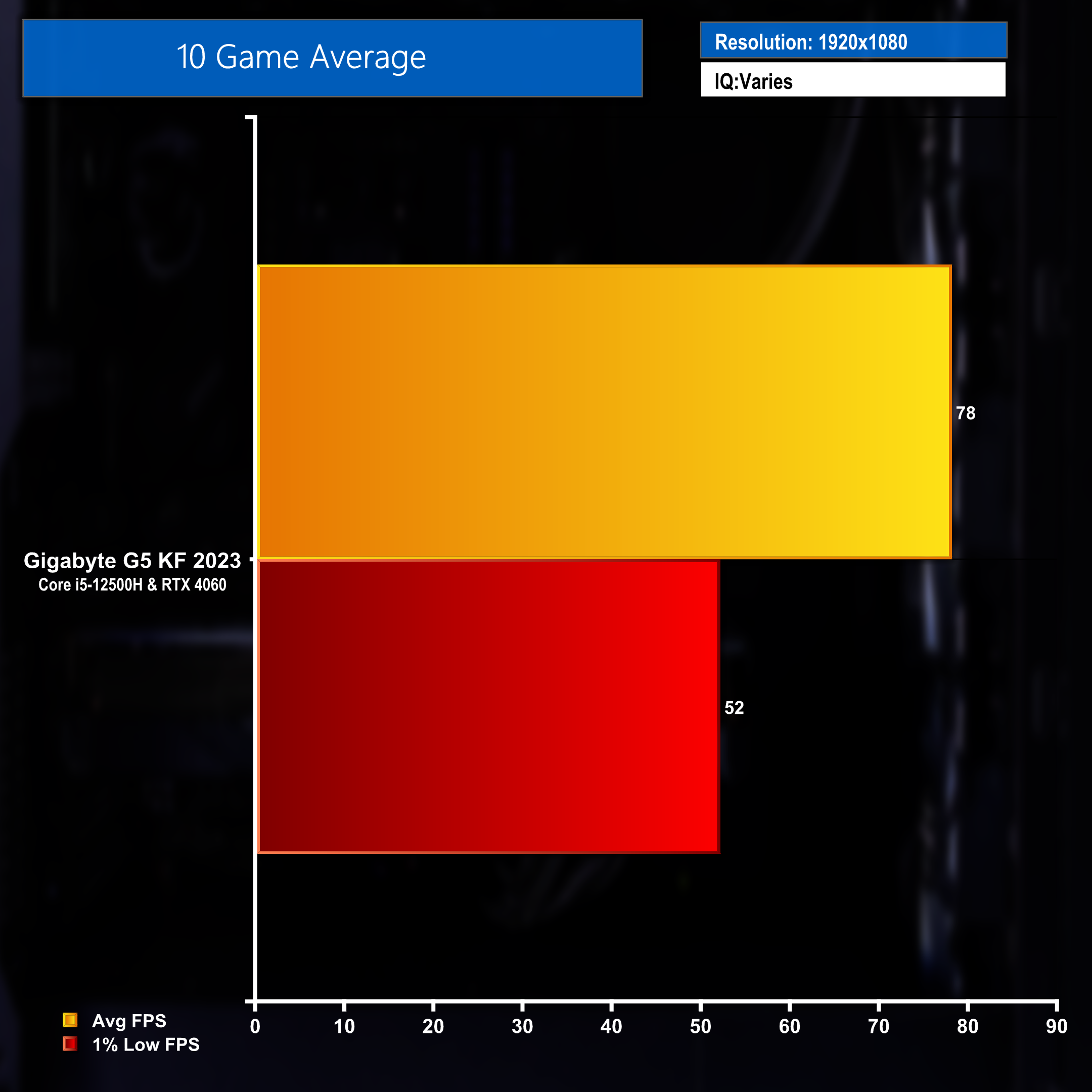 Gaming on the 1080p display at Ultra/High settings across a variety of titles did throw up some impressive results considering the price point.