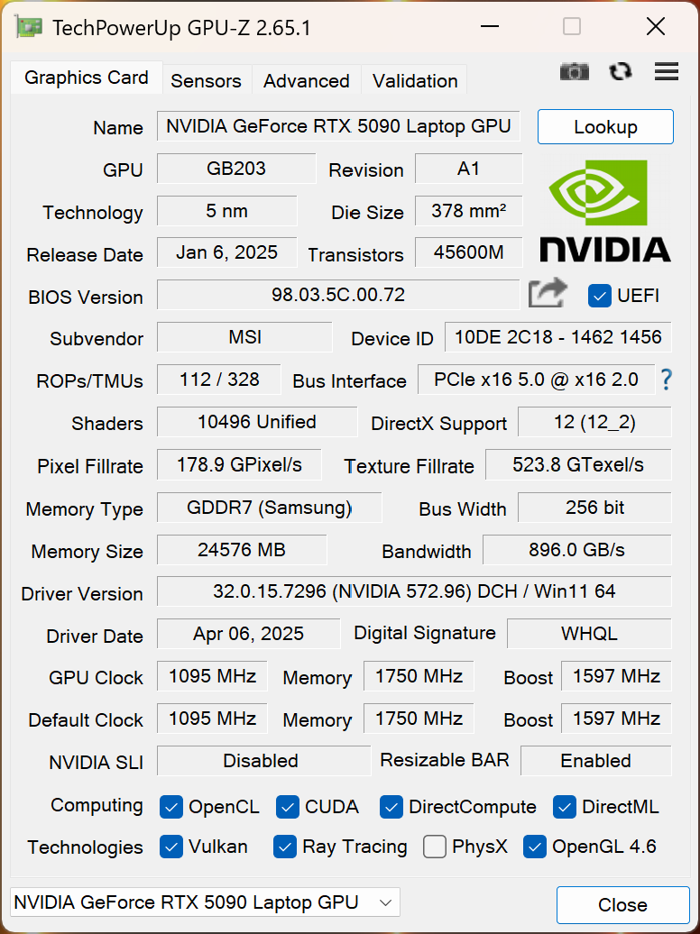 The core specs are impressive – the combination of an Intel Core Ultra 9 285HX, Nvidia RTX 5090 mobile, 64GB of DDR5 memory running at 6400MT/s and a whopping 6TB of Raid 0 configured SSD storage combine to deliver truly top tier mobile performance. The design is eye-catching and the machine definitely has the ‘wow factor' – The seamless, haptic trackpad and fully mechanical keyboard are exceptional and the best I've seen in any gaming laptop.