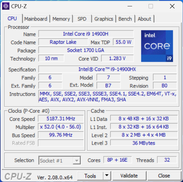 - Processor (CPU) – Intel® Core™ i9 24 Core Processor 14900HX (5.8GHz Turbo)