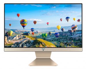 Now we are getting into Asus's new Vivo all-in-one PCs. The first is the Vivo V272, which features up to an Intel Core i7 processor and an Nvidia Geforce MX150 GPU for light graphical workloads. The panel is a 27-inch multitouch display with a 100 percent sRGB color gamut and 178 degree viewing angle. Using the Asus ZenAnywhere app, you can remote access your PC at any time if you need to grab important files while on the move. The Vivo V222 is a bit different. It comes with a 22-inch Full HD display with an 87 percent screen to body ratio but retains the same hardware options as the Vivo V272. Unfortunately, we didn't manage to get any of our own images for these two up close, but above you will find some of Asus's own images for these two systems.
