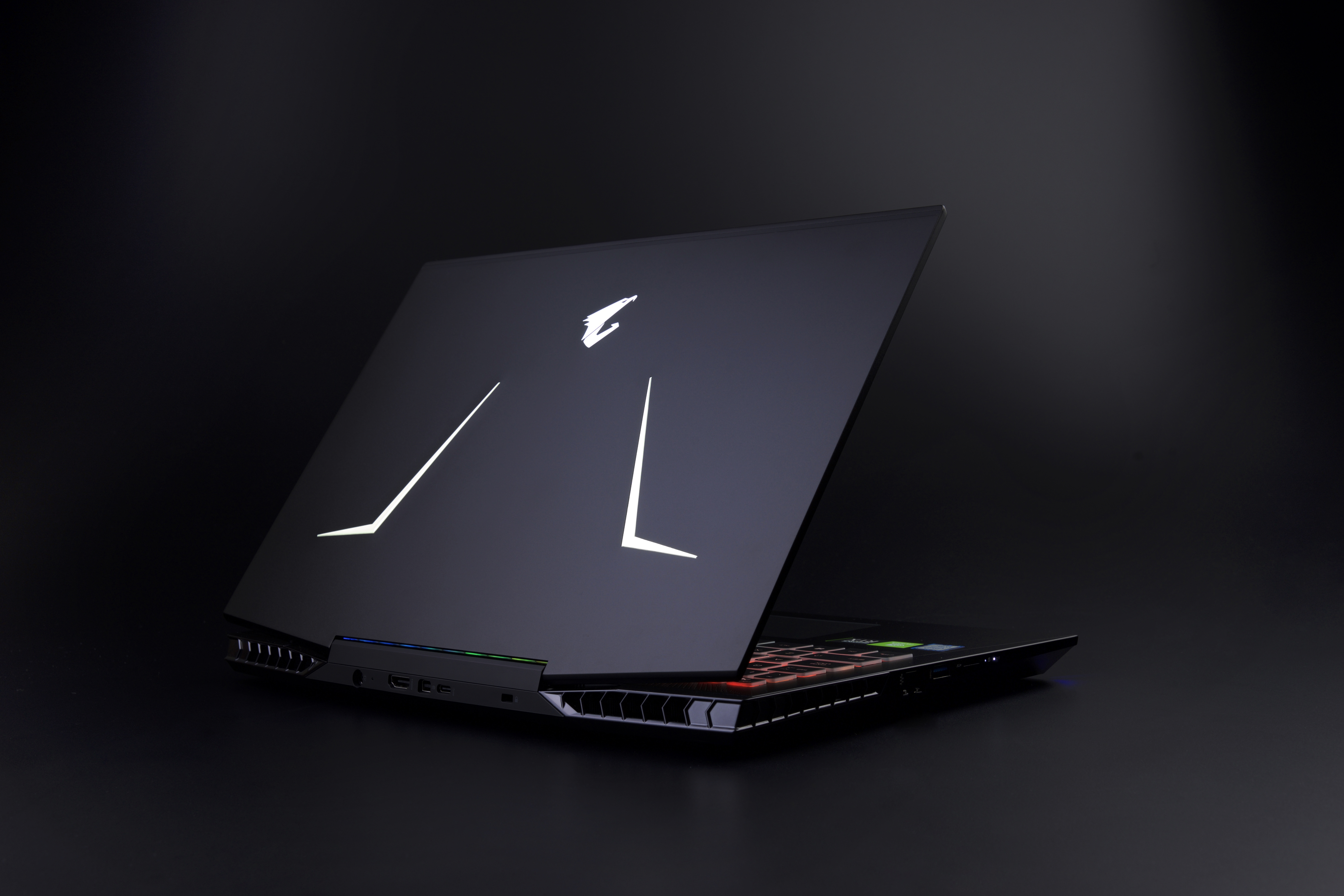 We'll start off with the Aero 15 Classic. This laptop sports an all black, understated design and is equipped with a top-end Intel Core i9-9980HK processor. This is the first eight-core mobile CPU from Intel, with a boost speed capable of reaching 5GHz under the right cooling conditions. This laptop is built around utilising as much Intel hardware as possible, so it also inclues a 760p SSD, Thunderbolt 3 and Intel-based Killer 1550 Wi-Fi.
