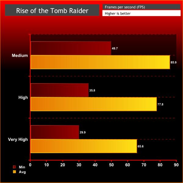 The Razer’s GTX 1060 won’t have trouble playing any current games. Deus Ex: Mankind Divided is one of the toughest titles around right now and with Ultra settings selected the Blade Pro delivered an average of 38.6fps. It was even faster in Rise of the Tomb Raider.