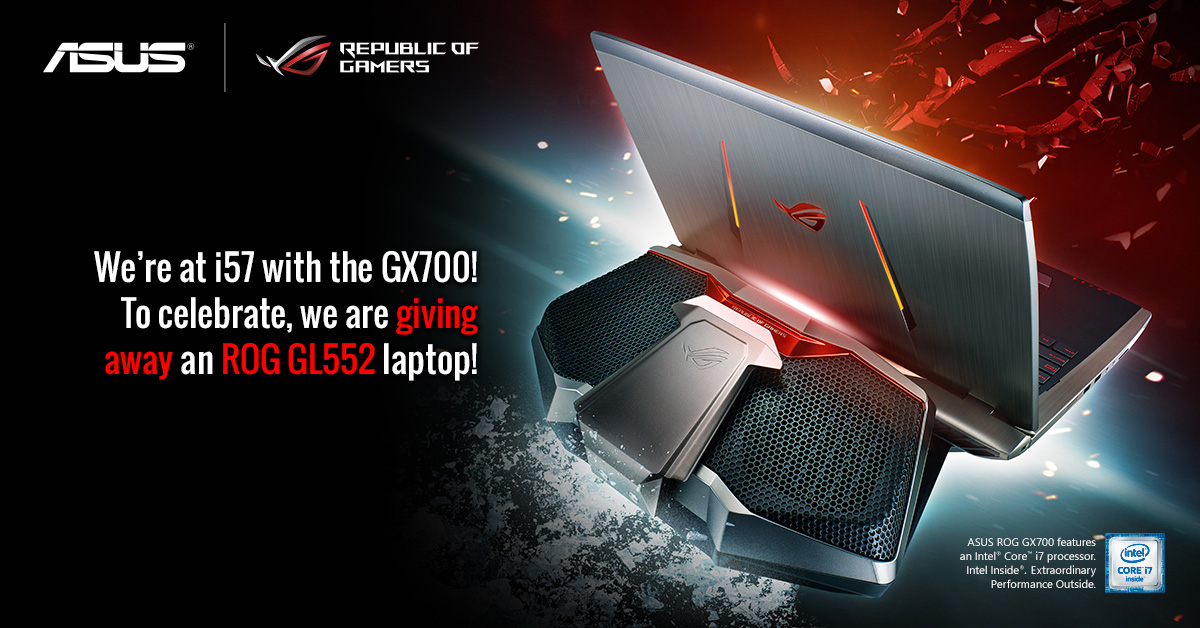 To celebrate the ROG GX700 being available to see (and drool over) at the upcoming Insomnia 57 gaming event, ASUS have decided to give away one of their GL552 gaming laptops.