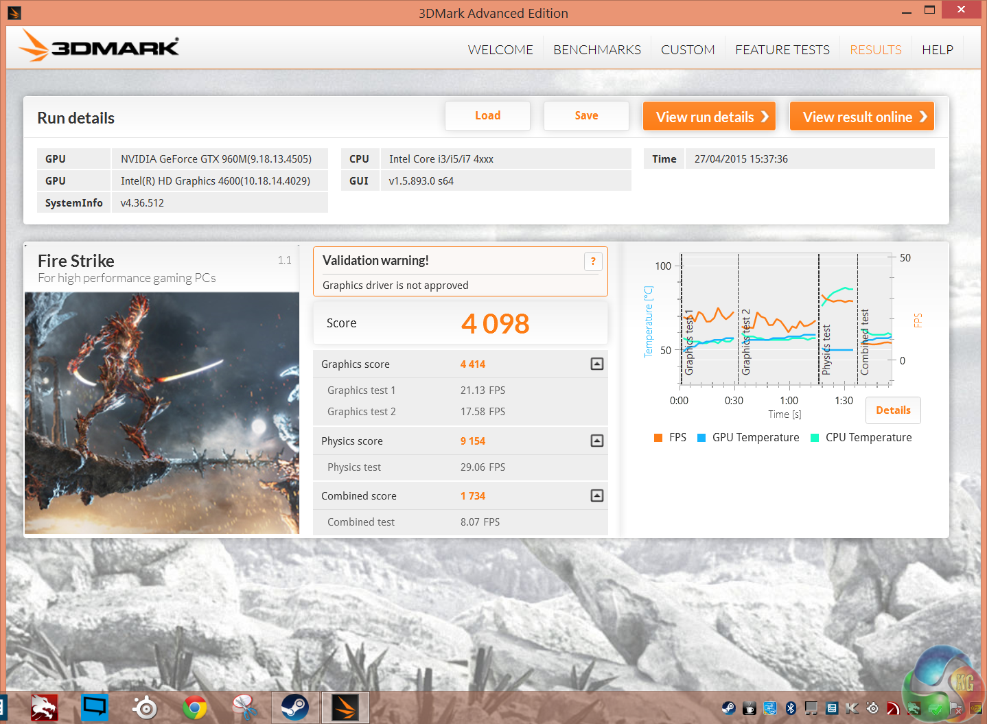 Very similar overall performance to the desktop Asus GTX750Ti Strix OC. Perfectly acceptable for 1080p gaming.