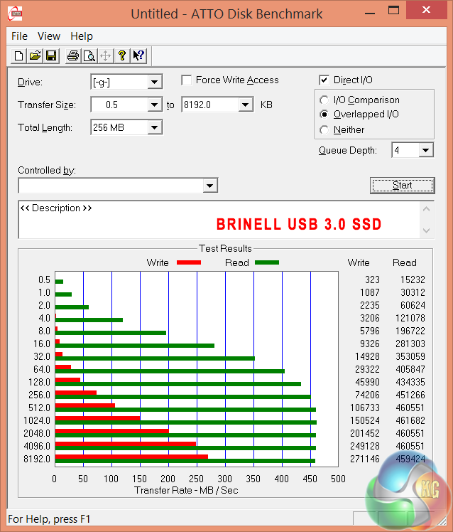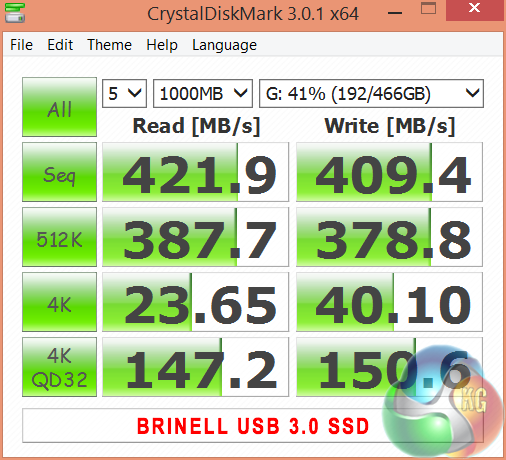 To test USB 3.0 performance we need a drive that is capable of completely saturating the bus. Until recently we used the Corsair Voyager GTX drive, one of the fastest pen drives on the market. We have recently switched to using a 500GB Brinell Drive, available on Amazon for around £250 inc vat. Inside is a 500GB SAMSUNG EVO 840 SSD, a product all our readers are familiar with.