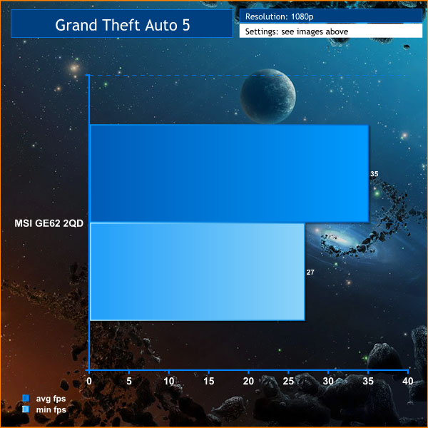 For the most part the engine is running between 30 and 40 frames per second, with one or two minor drops to 27-29fps. I would consider these image quality settings playable – but adjustment could be made to improve frame rate further, with a subsequent loss of image quality.