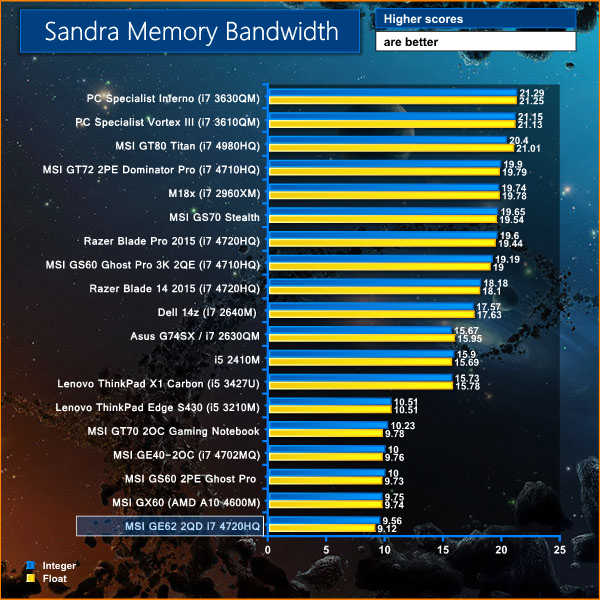 The single channel memory in the MSI GE62 2QD negatively impacts performance in these synthetic benchmarks, although the Core i7 processor is certainly not lacking in grunt.