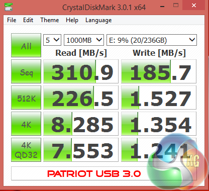 We test the USB 3.0 performance on the MSI system with one of our fastest portable flash drives – the Patriot SuperSonic Magnum 256GB. We reviewed this back in February, check it out over here.