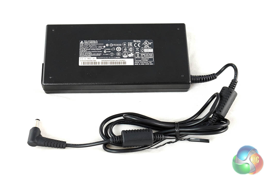 In the other box is the power adapter. This is quite thin, but long. Many people may not look at the power adapter, but this is actually made by DELTA, one of the best power supply companies on the planet. It is rated 150W at 19.5V, 7.7A.