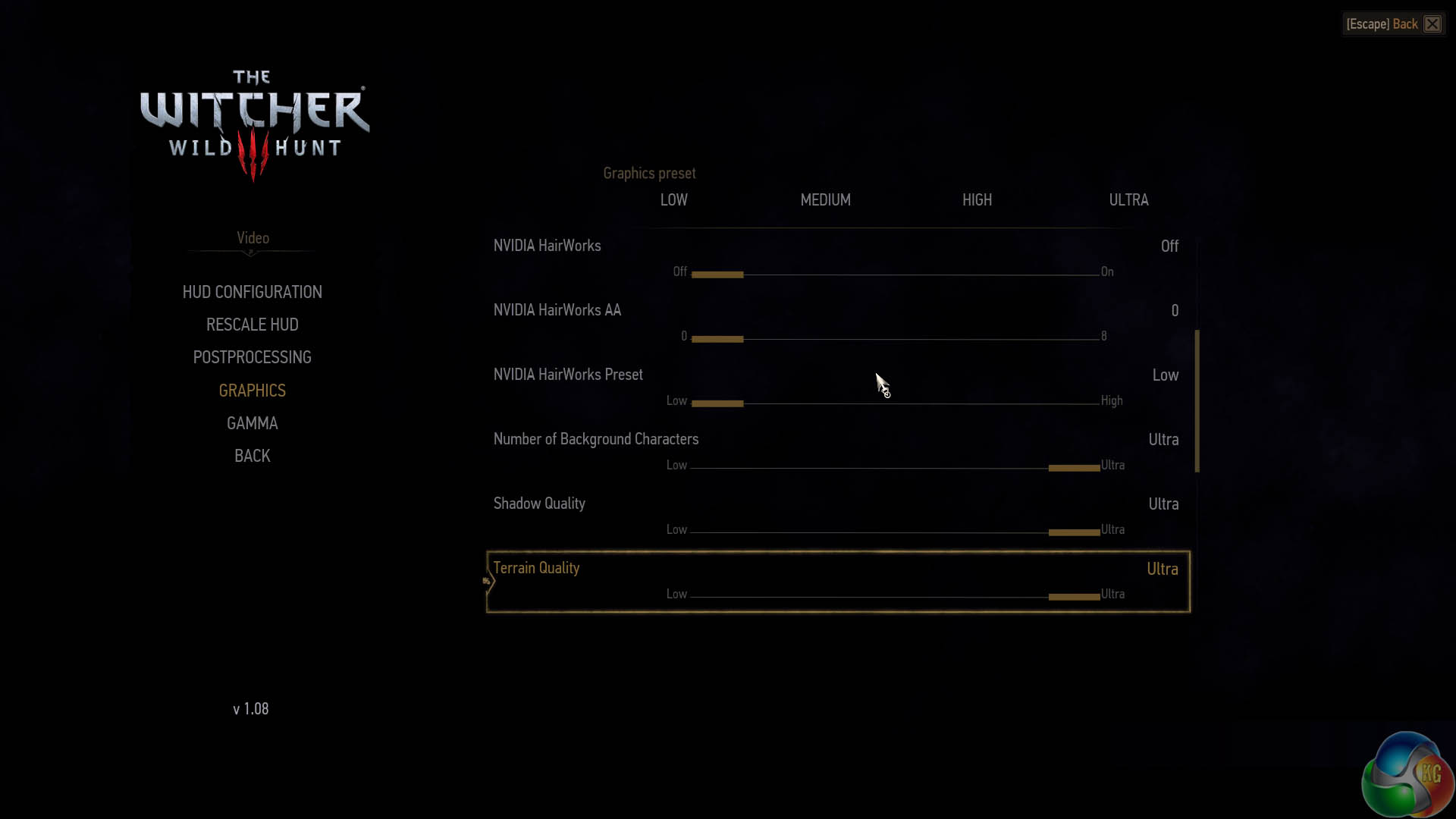 Postprocessing is set to the ‘high' preset. We enable the ULTRA graphics preset but disable Nvidia Hairworks as it has a rather negative impact on frame rate.