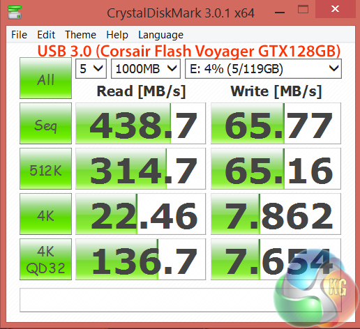 These are some of the highest results we have seen via the USB 3.0 interface. A sequential read score of close to 440 MB/s.