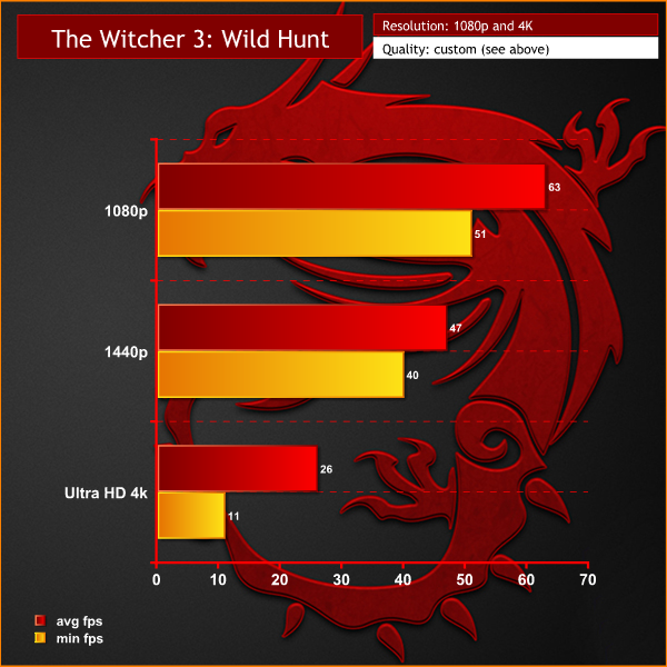At 1080p, the system scores well, averaging over 60 frames per second. At 1440p, the frame rates are still quite high, and likely perfectly playable for a wide audience. Ultra HD 4k is a different story, frame rates are almost dropping into single digits.