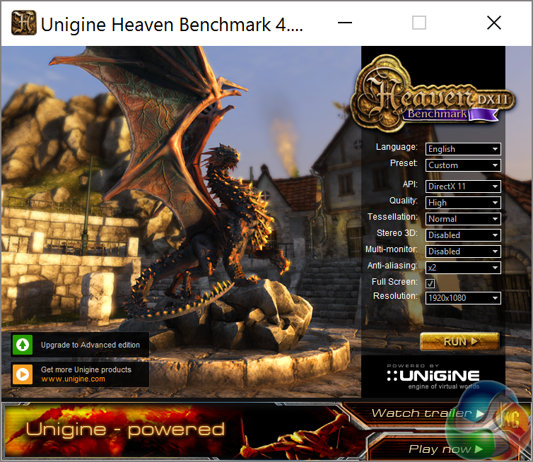 Heaven Benchmark 4.0 immerses a user into a magical steampunk world of shiny brass, wood and gears. Nested on flying islands, a tiny village with its cozy, sun-heated cobblestone streets, an elaborately crafted dirigible above the expanse of fluffy clouds, and a majestic dragon on the central square gives a true sense of adventure. An interactive experience with fly-by and walk-through modes allows for exploring all corners of this world powered by the cutting-edge UNIGINE Engine that leverages the most advanced capabilities of graphics APIs and turns this benchmark into a visual masterpiece.
