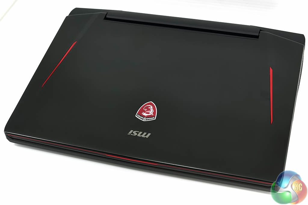 First impressions of the MSI GT83VR 6RF are positive. The red racing stripes are a clear indication of the gaming status of the laptop, and the MSI dragon logo takes pride of place at the top, centre position of the lid.