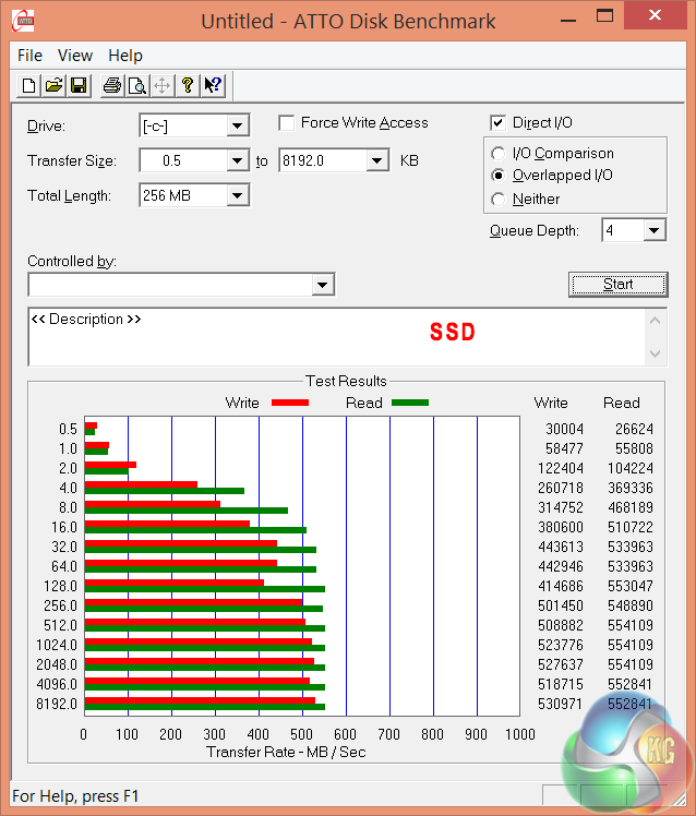 ATTO Disk Benchmark highlights great performance from the internal 256GB drive, hitting over 510 MB/s in the sequential read test and over 450 MB/S in the sequential write test.