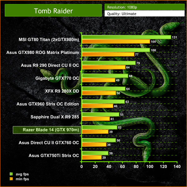The performance of the Razer Blade 14 is formidable, and certainly playable at both 1080p and 1800p resolutions.
