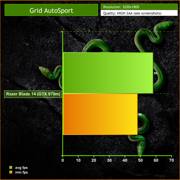 At these settings, Grid AutoSport is playable at 3200×1800, averaging almost 60 frames per second. It looks great too on the Sharp IGZO panel.