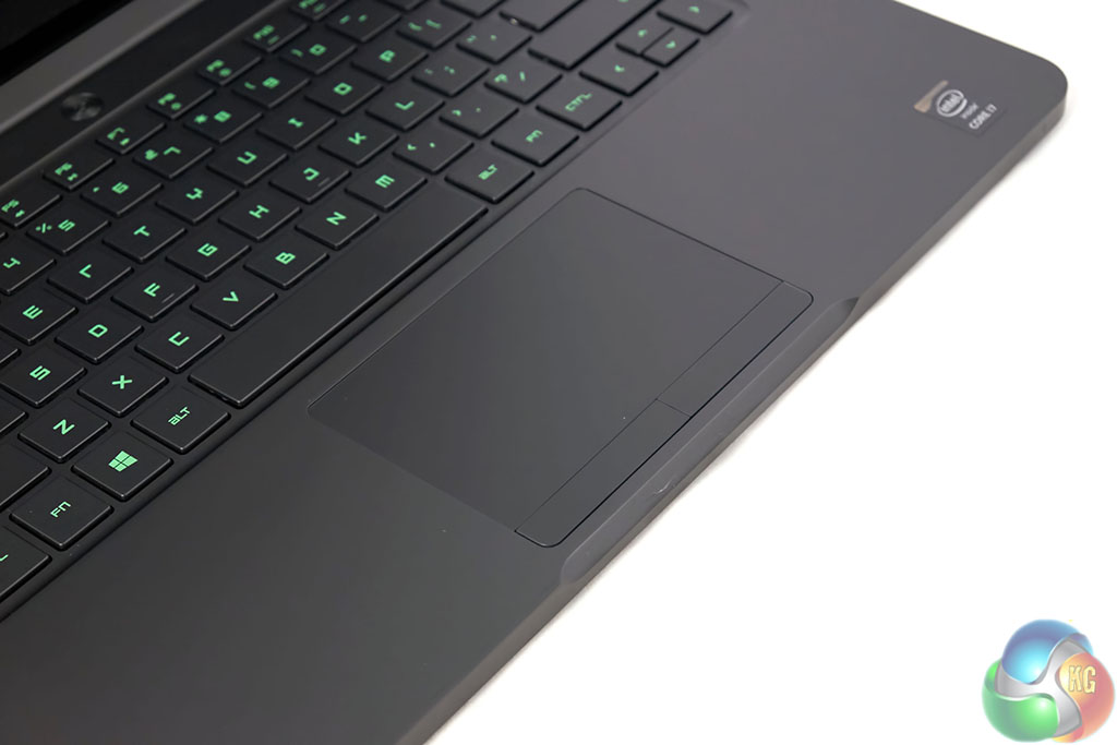 The keyboard is accented with green lighting, controllable from the FN key row. These are Razer colours, so it makes sense. You can't adjust the colour which may annoy some (especially Razer Chroma users), but I found the green really refreshing and clear to read in dimly lit/dark environments. It can be adjusted between disabled and ‘extremely bright' to suit every situation. It won't match the mechanical keyboard found on the amazing MSI GT80 Titan, but it was pleasant enough to use, even for long periods of time. Sadly as this is a US product, the return key is only single height, a personal pet peeve of mine.