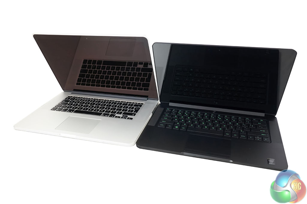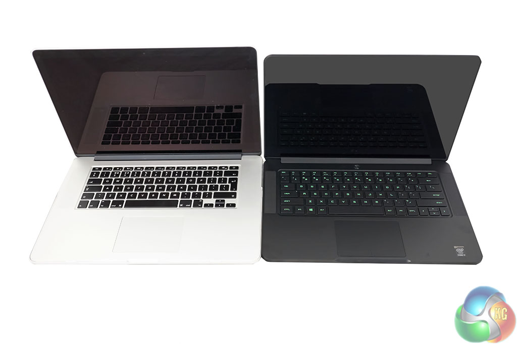 Above, the Razer Blade 14 (2015) beside the slightly larger Apple MacBook Pro 15 inch model. The design ethos is very similar, and as you can see Razer only have a single sticker on the chassis, bottom right – highlighting the adoption of an Intel Core i7 processor. I would rather they had no stickers or badges on the chassis, but compared to many companies, it is minimal.