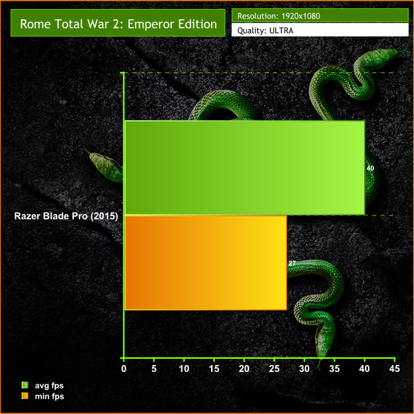 The ULTRA profile is demanding, however the GTX960M handles it well, holding frame rates above the 25 mark – which we consider ‘smooth motion'.