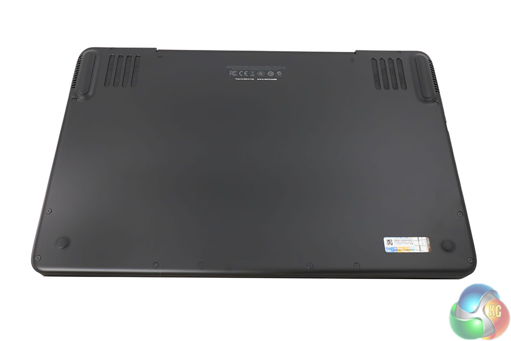 Underneath there are very few cooling vents, apart from the top right and left sections. air is pulled in from underneath and expelled out the left and right sides of the chassis at the rear. As I will explain later in more detail, it is a very good cooling system and it works significantly better than the 14 inch model.