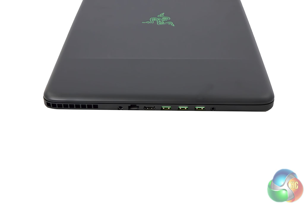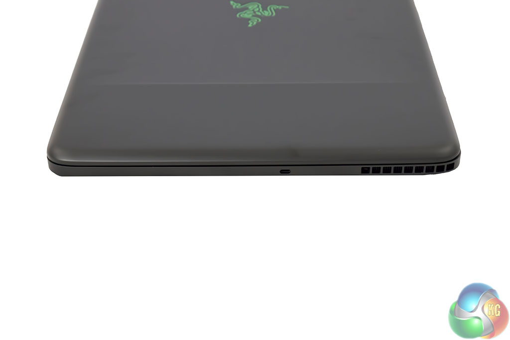 Not a lot happening at the front or rear of the laptop. There is a little cut out section at the front to make it easier to open by hand. This is something Apple have been doing for years, and I can't help but feel that Razer have ‘borrowed' some of Apple's better (yet simple) design ideas. PC Purists will hate to even consider this, but Apple have a good track record with their MacBook pro range.