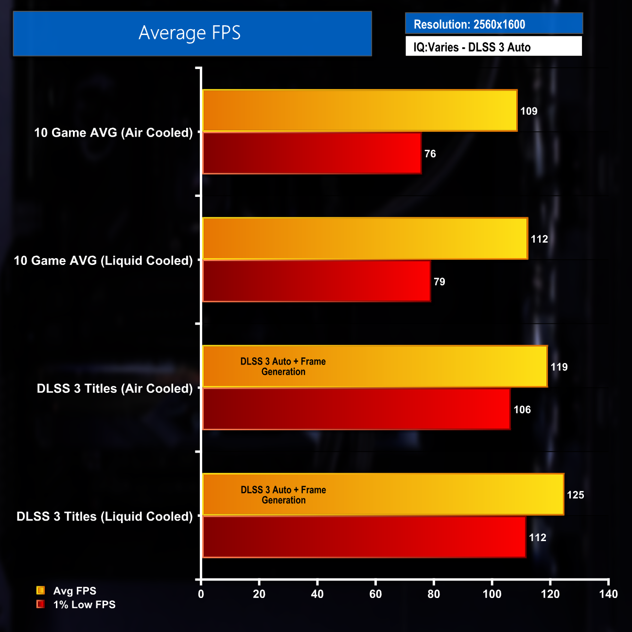 The addition of the liquid cooler did increase frame rates slightly with some titles seeing more gains than others.