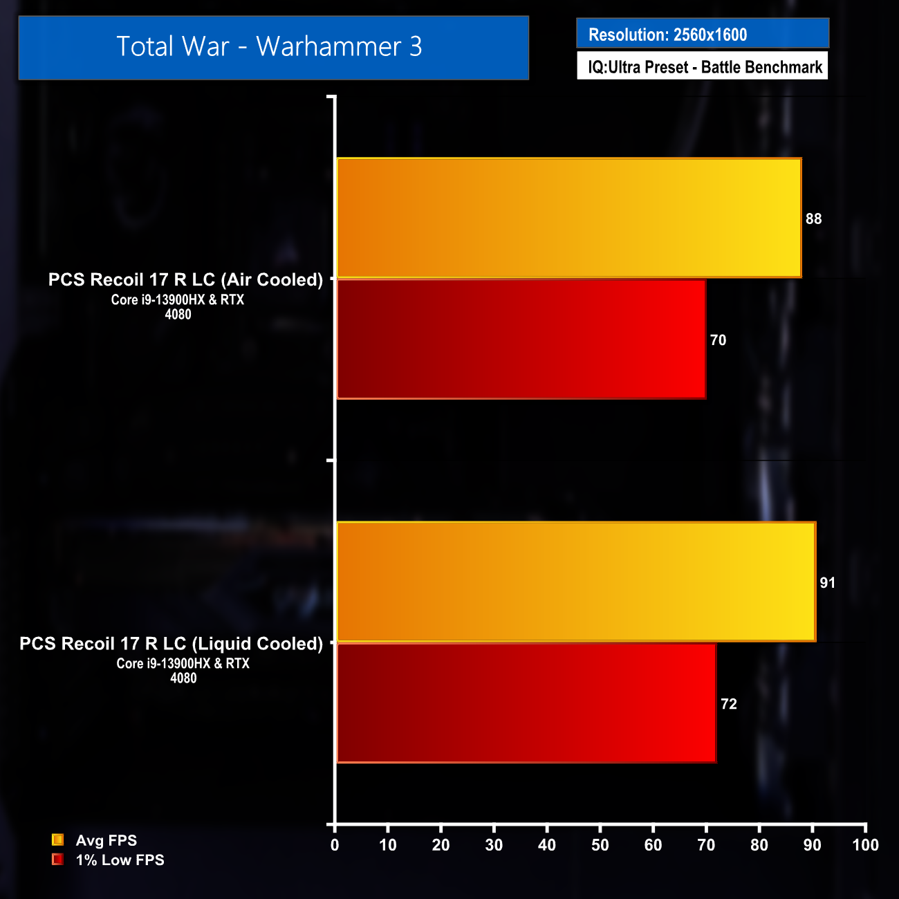 The 10 game average and DLSS supported titles average frame rates really highlight the great gaming performance at maximum settings from the Recoil 17 R LC. Settings could be turned down by competitive gamers to help push the FPS figures even higher and help take full advantage of the 240Hz display.